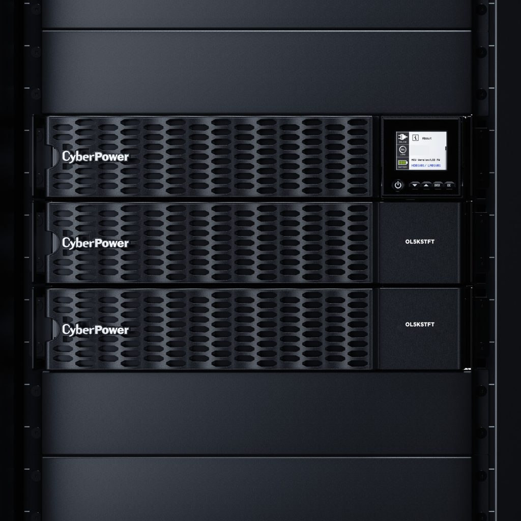 The CyberPower Smart App Online OL5KSTF rack/tower step-down isolation transformer converts 208 V input voltage originating from utility power, a UPS, or a generator to 120 V output.