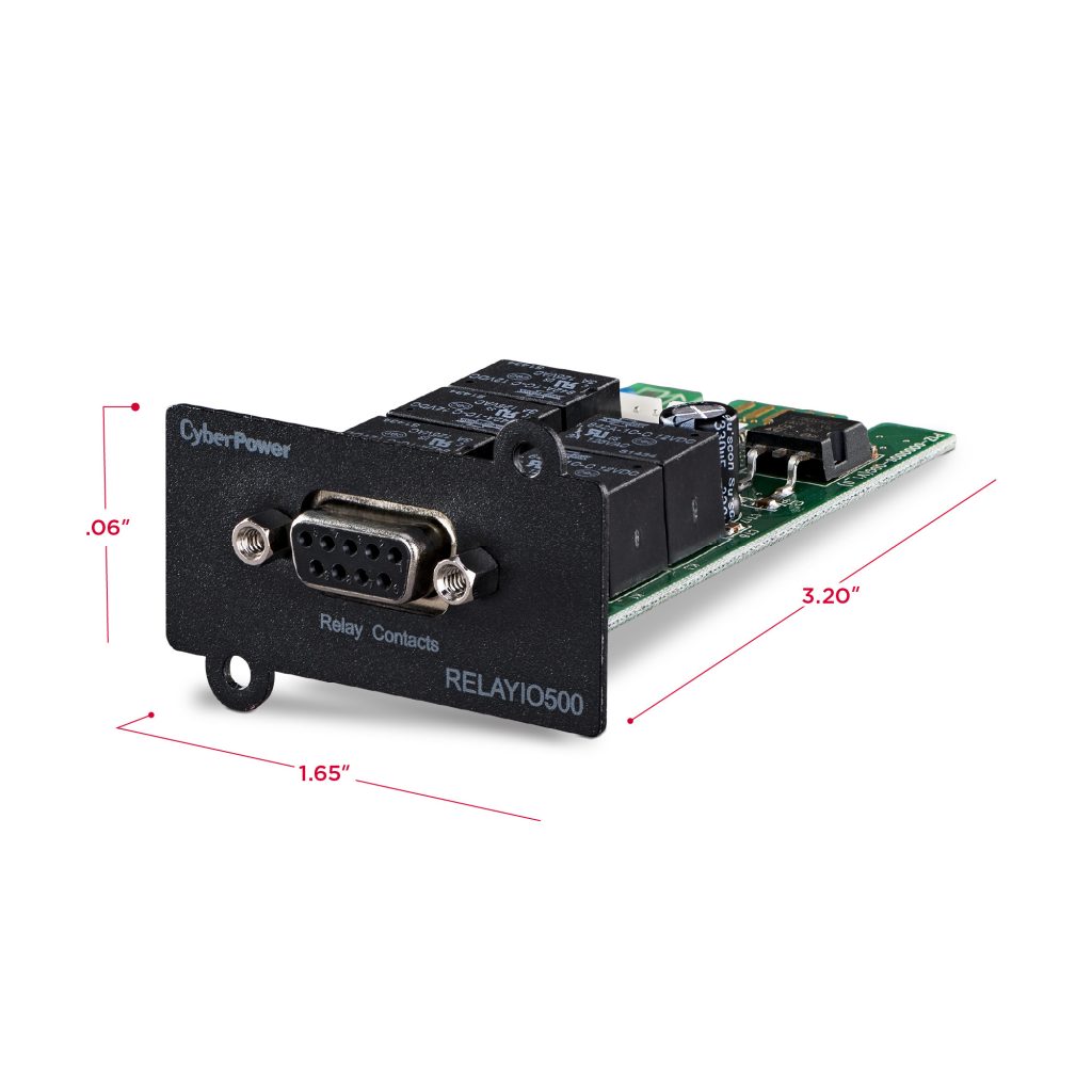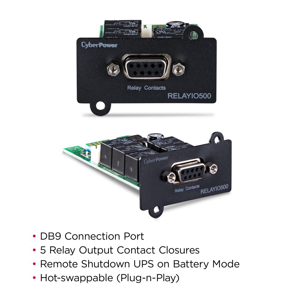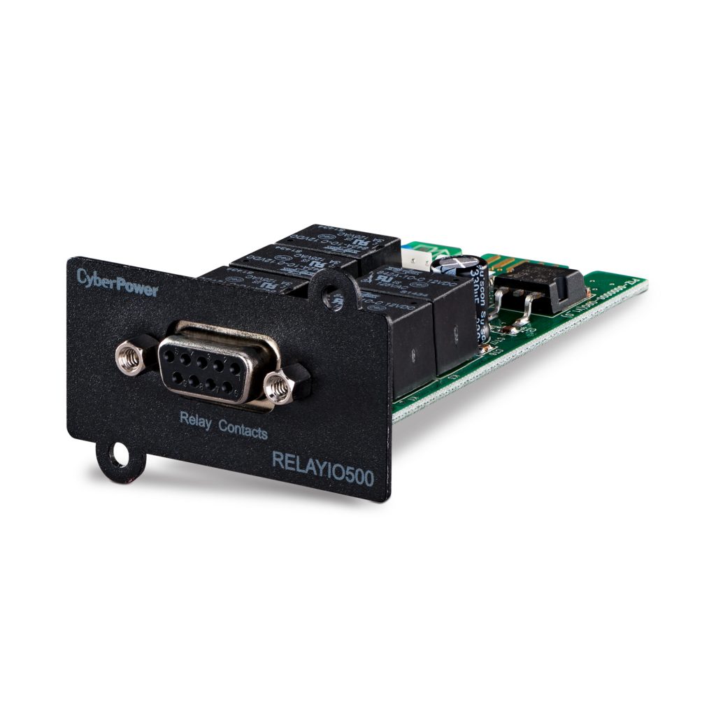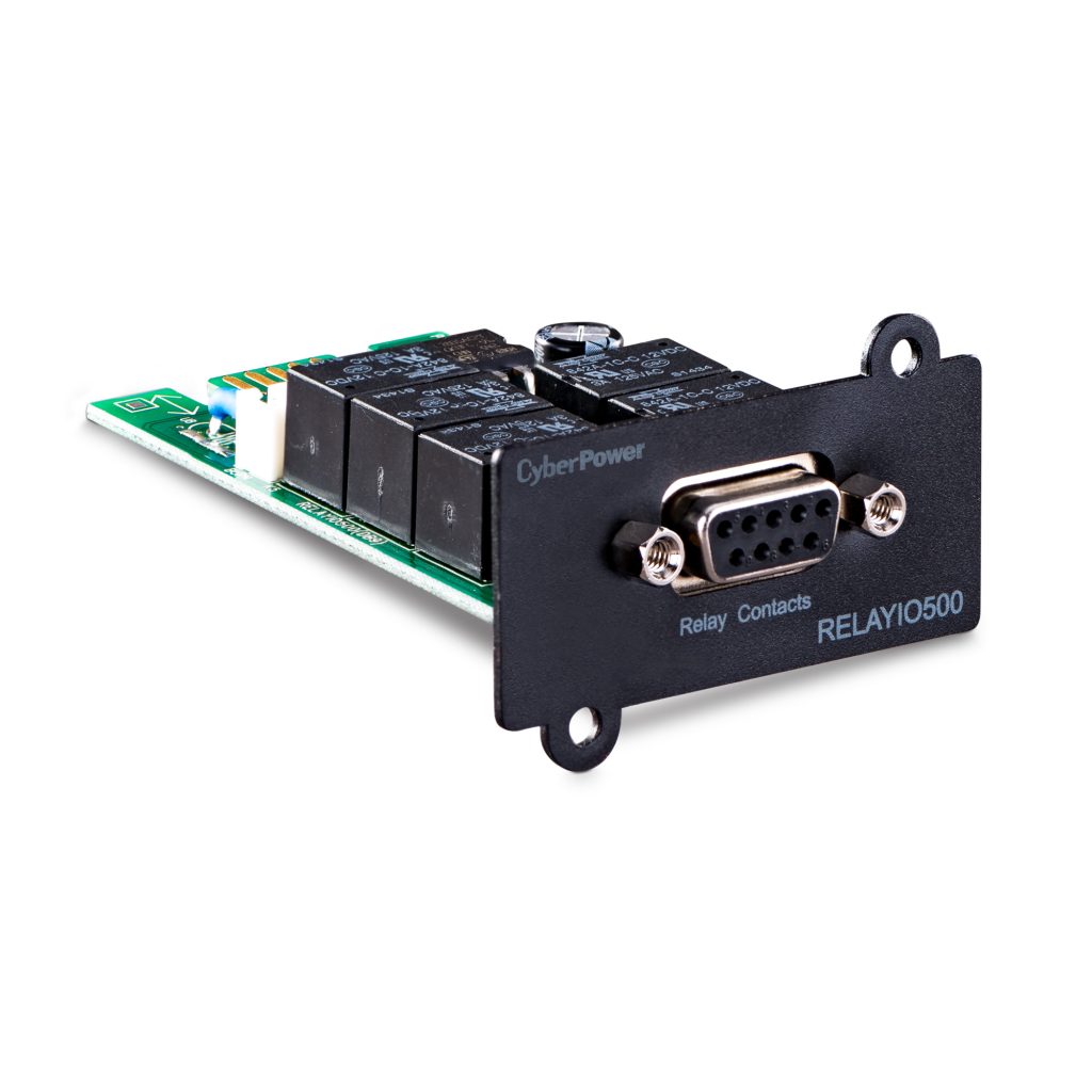 The CyberPower RELAYIO500 is a local management solution that provides users the ability to monitor UPS status and events via 5 contact closure outputs. Easy to install in any compatible* Smart App UPS with expansion slot.