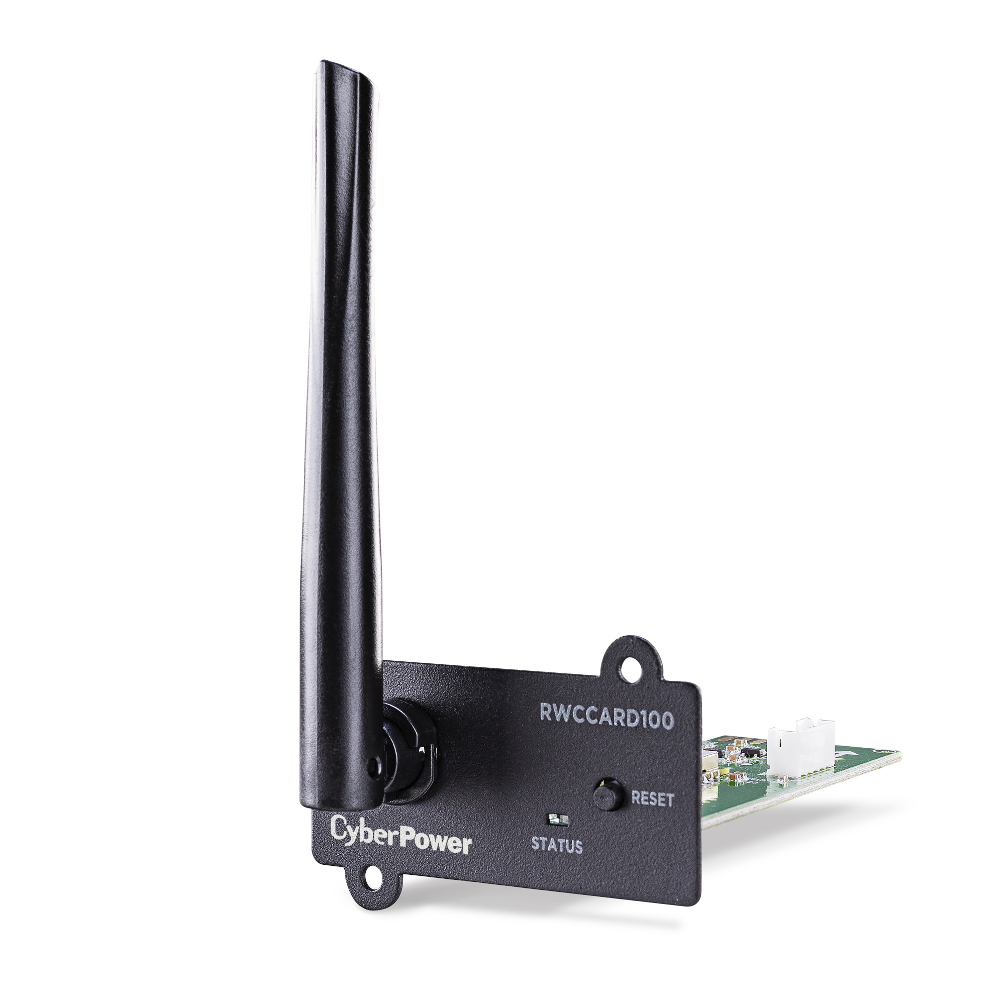 A UPS monitoring card, the CyberPower RWCCARD100 wireless card connects to a wireless access point to monitor the operation of select CyberPower UPS that are setup with PowerPanel® Cloud system. A secure web portal or mobile application is used to remotely monitor a UPS and provide notifications on power events.