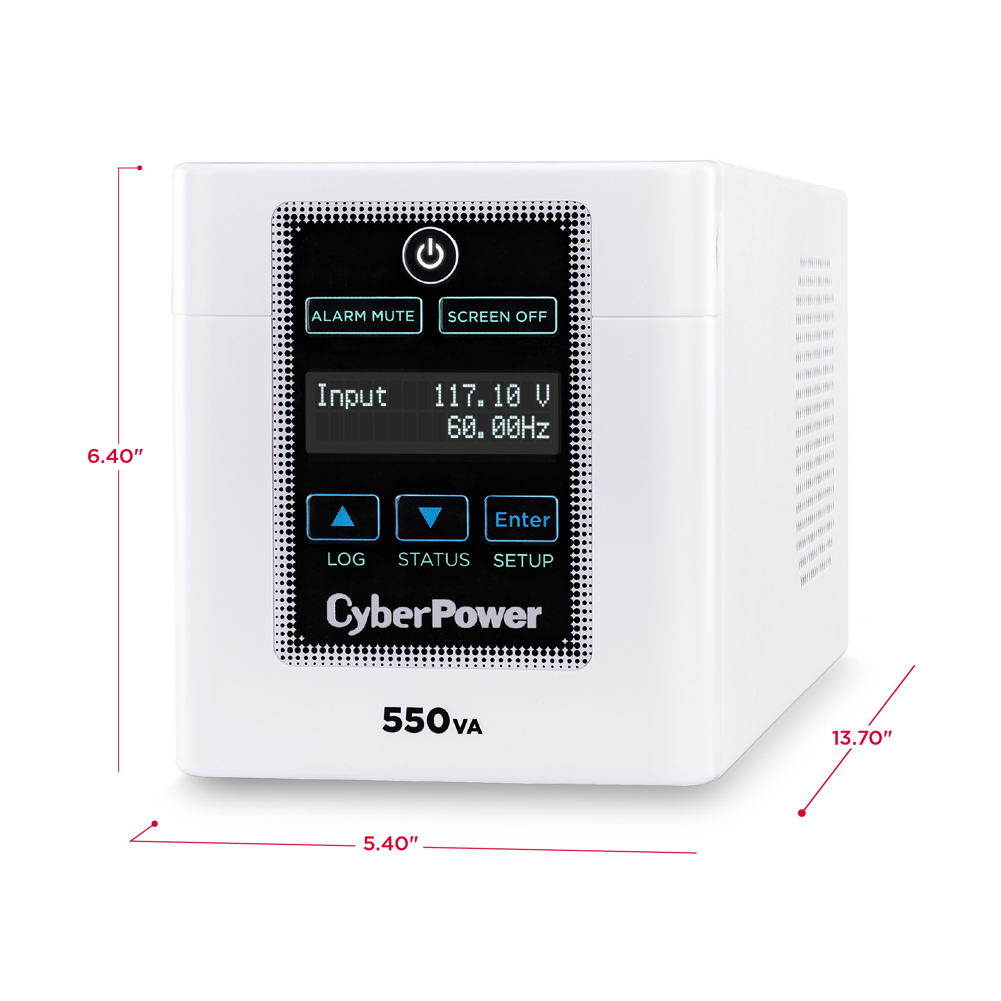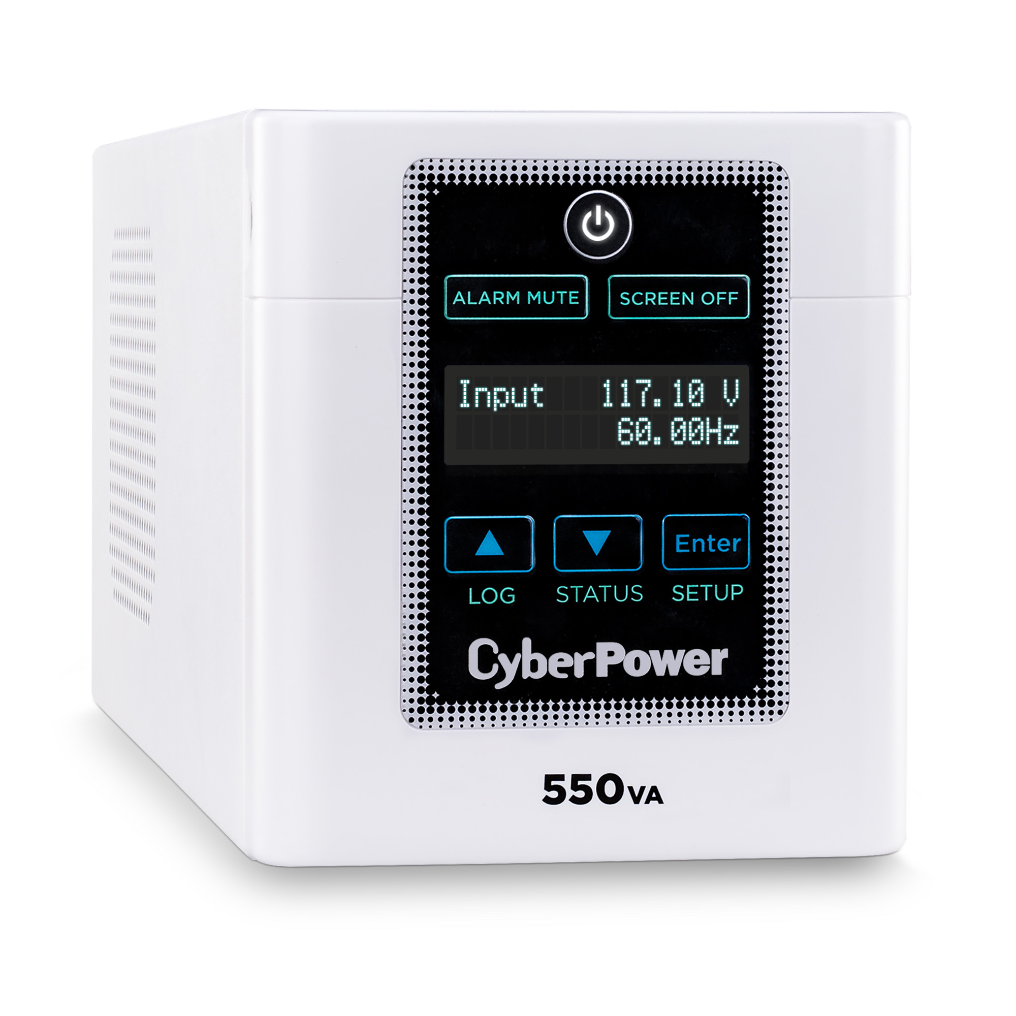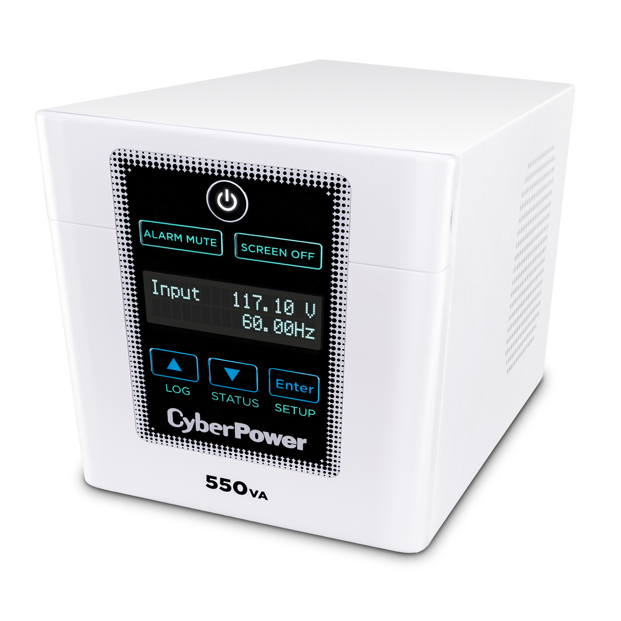 The CyberPower M550L medical-grade UPS delivers clean, consistent backup power to sensitive medical equipment in hospitals and healthcare facilities. Designed for use in patient care vicinities, the M550L has been tested to meet all UL 60601-1 requirements, and includes hospital-grade plugs and outlets. The M550L also includes a built-in isolation transformer to minimize the current leakage and eliminate line noise, a tip-resistant mini-tower design, replaceable batteries, and a sealed, spray-resistant LCD panel.