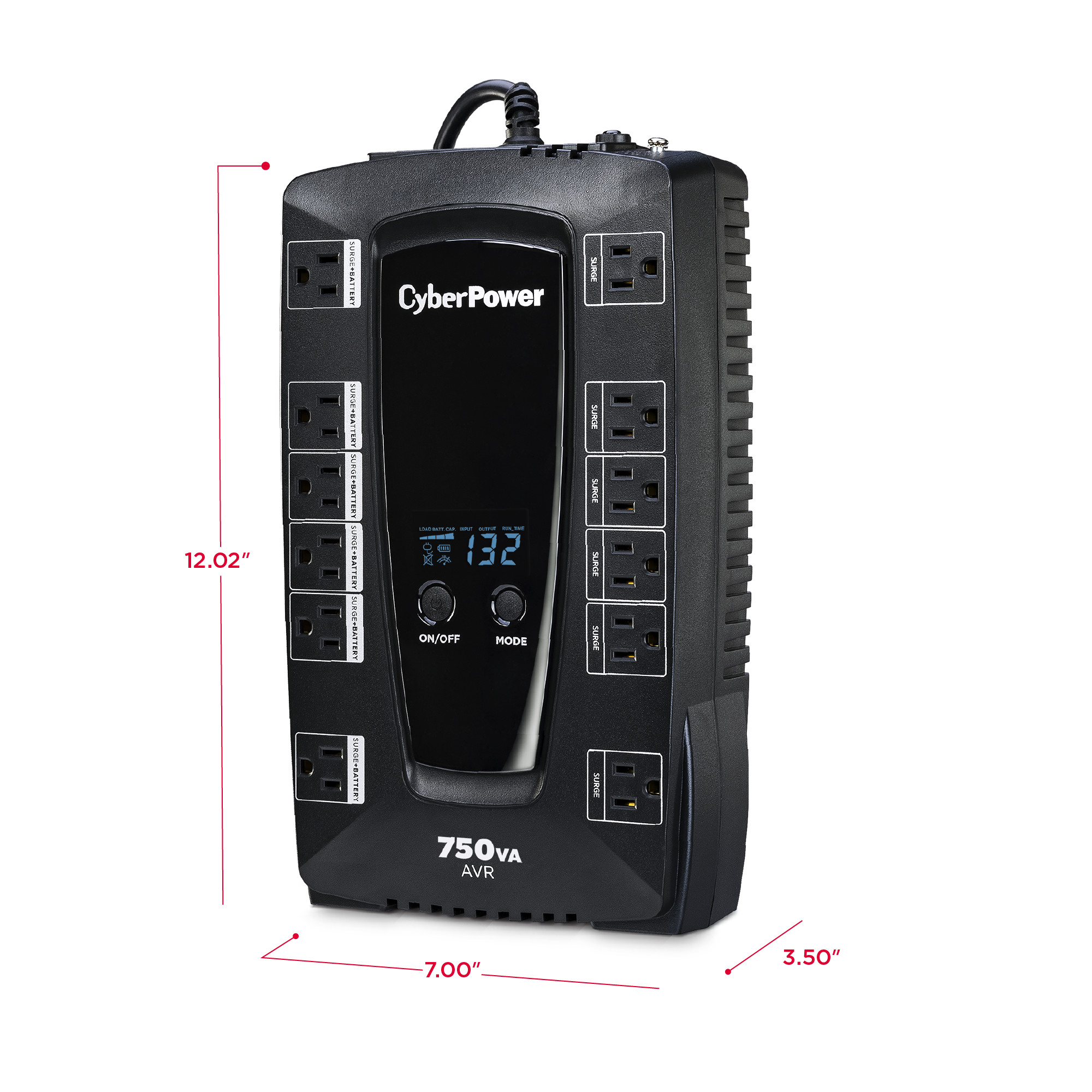A compact UPS with line interactive topology, the CyberPower AVRG750LCD provides battery backup (using simulated sine wave output) and surge protection for desktop computers, workstations, networking devices, and home entertainment systems. The AVRG750LCD uses Automatic Voltage Regulation (AVR) to correct minor power fluctuations without switching to battery power, which extends battery life. AVR is essential in areas where power fluctuations occur frequently. The AVRG750LCD comes with a three-year warranty (including coverage of batteries) and a $150,000 Connected Equipment Guarantee.
