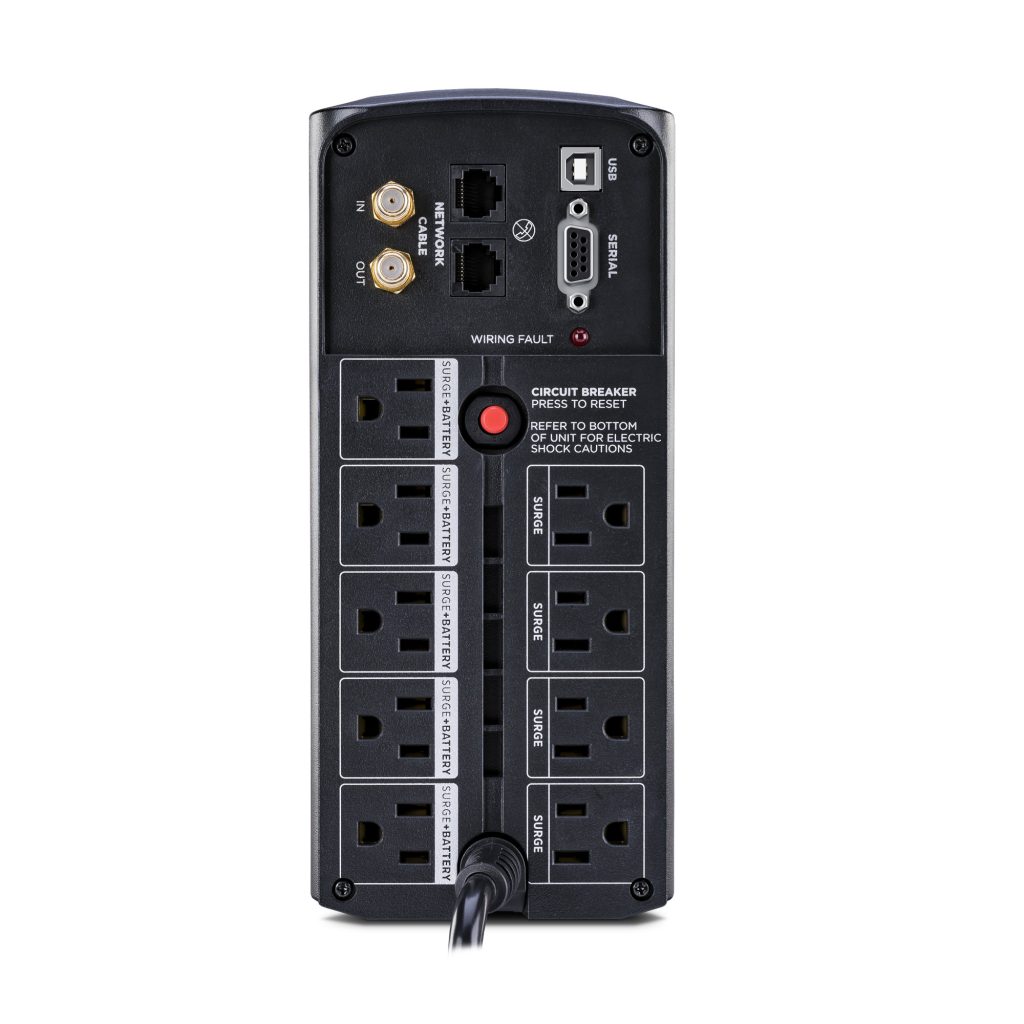 Prevents power surges that travel through coaxial and Ethernet lines from causing damage to electronics. - Line Interactive Topology