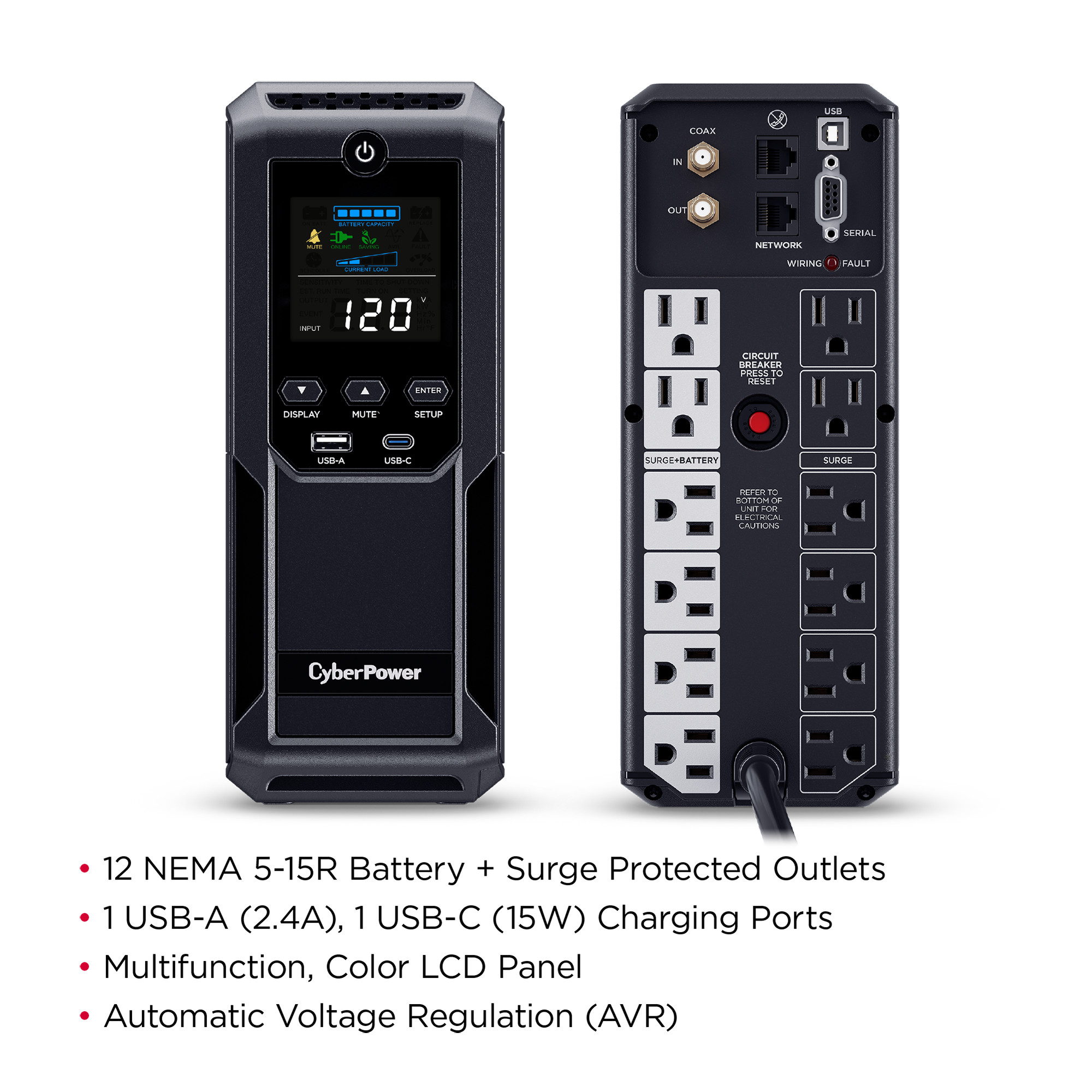 CP1500AVRLCD3 1500 VA900 WMini-TowerSimulated Sine Wave12 - NEMA 5-15R $219.95