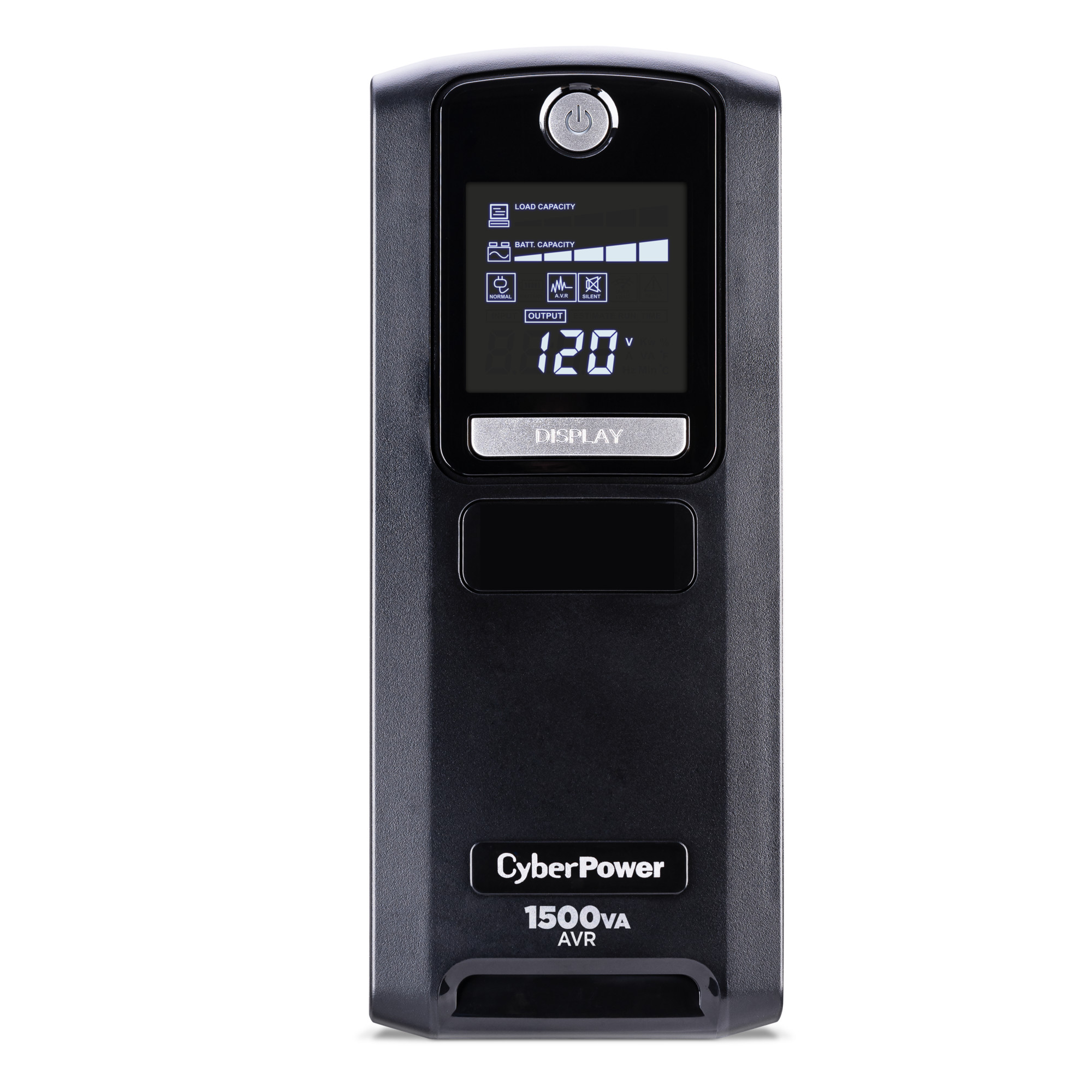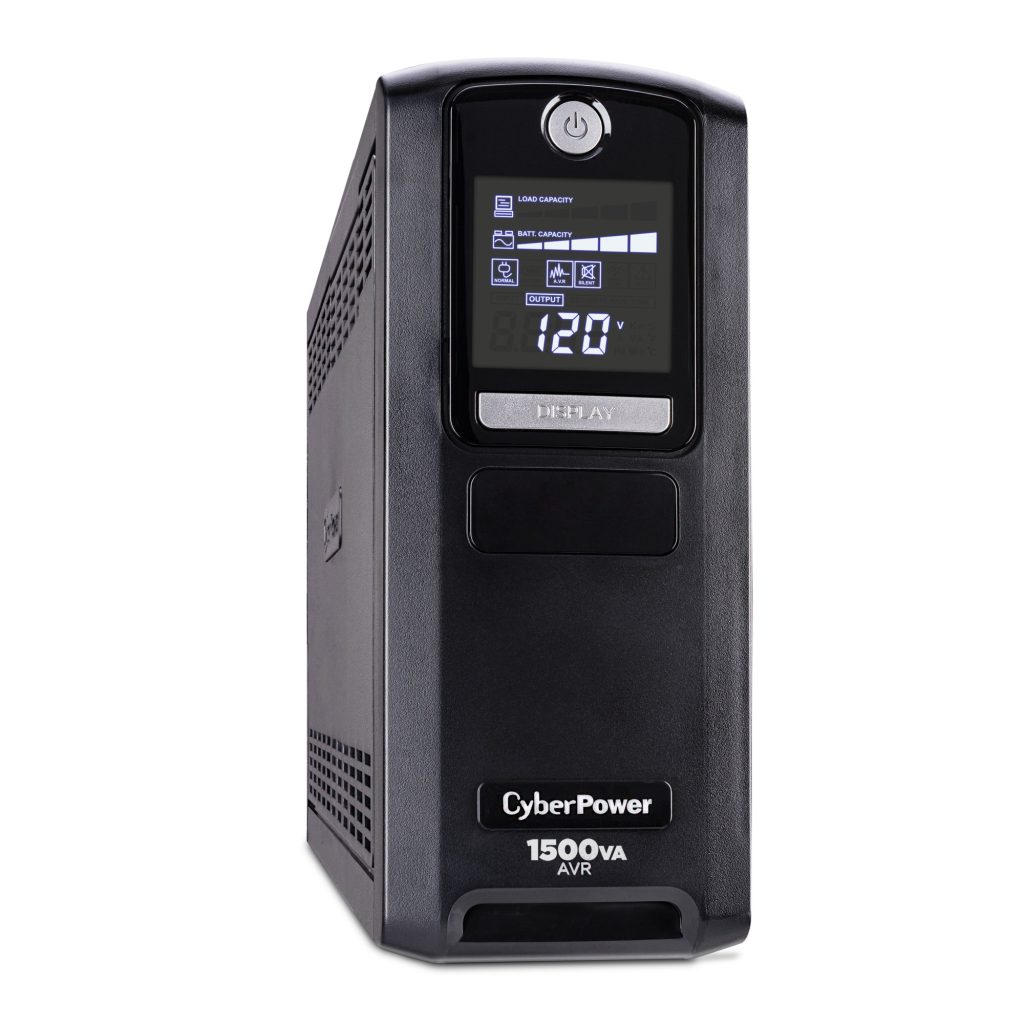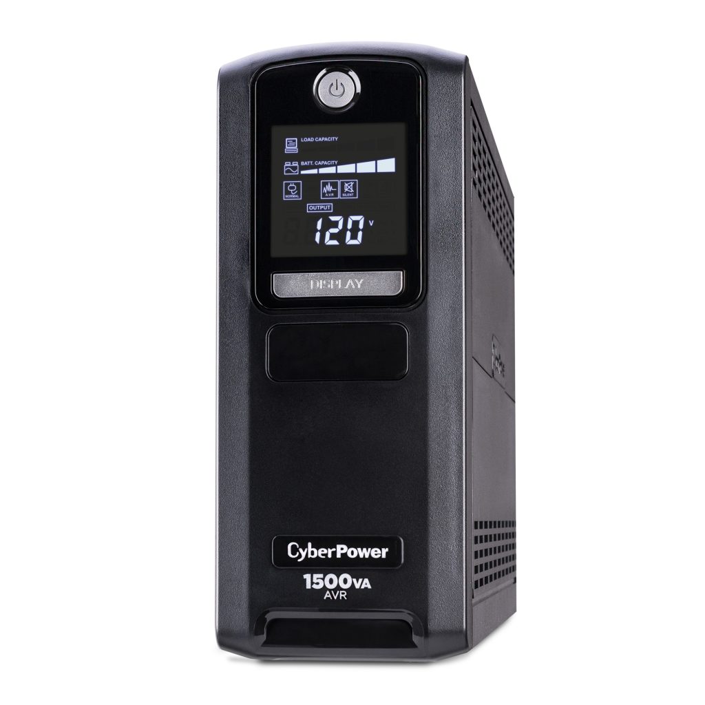 The CyberPower CP1500GAVR mini-tower UPS provides battery backup and surge protection for common home and office electronics. The CP1500GAVR is black and features an LCD control panel to quickly confirm operating status and alerts at-a-glance. Additional features include 10 grounded outlets (5 are surge protected only, 5 provide battery backup and surge protection), a 6 foot power cord, and it comes with a three-year limited warranty (including coverage of batteries) and a $500,000 Connected Equipment Guarantee.