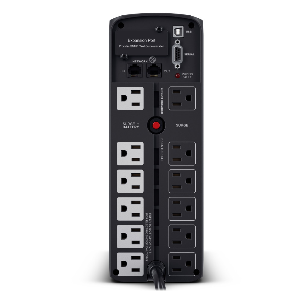 The CP1500PFCLCD uses Automatic Voltage Regulation (AVR) to correct minor power fluctuations without switching to battery power, which extends battery life. AVR is essential in areas where power fluctuations occur frequently. The CP1500PFCLCD comes with a three-year warranty (including coverage of batteries) and a $500,000 Connected Equipment Guarantee.