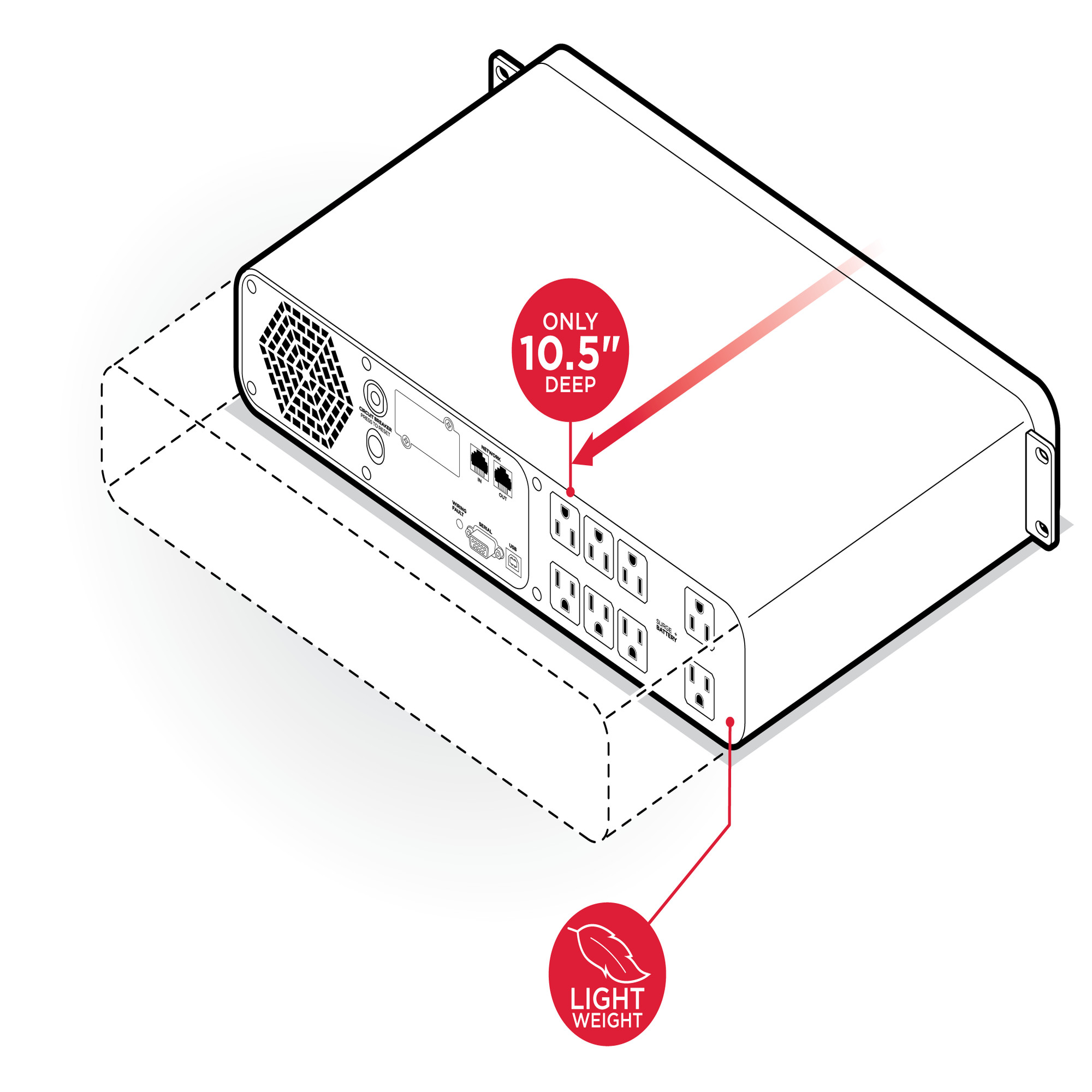 Generates energy that is identical to, or cleaner than the utility company’s power grid. Benefits include low total harmonic distortion, minimal electrical noise, and optimal line clarity. - Short Depth Rackmount