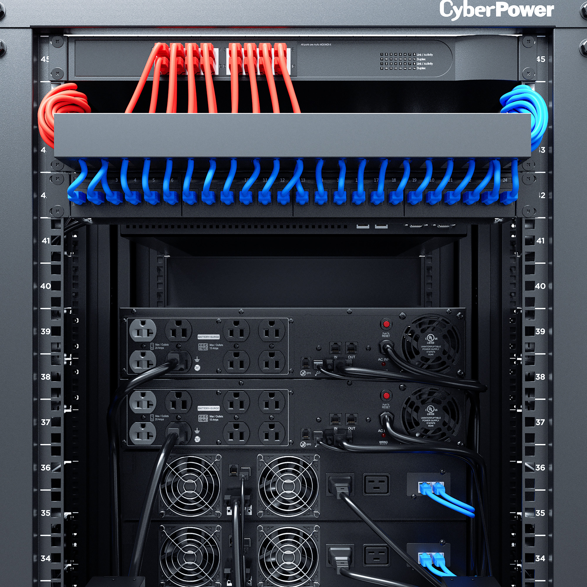 Displays immediate, detailed information on the UPS battery and power conditions, alerting users to potential problems before they can affect critical equipment and cause downtime. The rotatable panel is easily readable whether the UPS is rack mounted or standing as a tower.