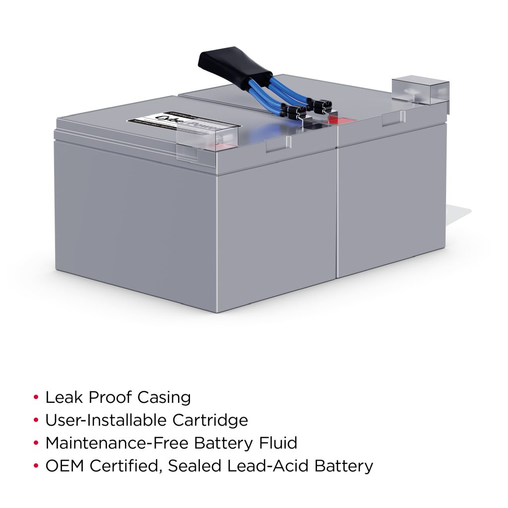 The CyberPower RB12120X2B UPS replacement battery cartridge restores life to UPS systems with internal batteries that have become weak or completely depleted. The RB12120X2B 12V/12AH contains (2) two batteries, certified to meet or exceed original manufacturer specifications. All replacement cartridges come with leak proof sealed lead acid batteries that are pre-assembled for easy installation.