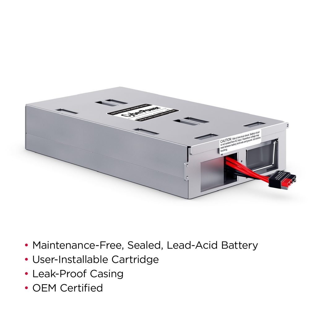 The RB1290X4D UPS Replacement Battery Cartridge restores life to CyberPower UPS systems that have weak or completely depleted internal batteries. The RB1290X4D contains four 12V/9AH replacement batteries, certified to meet or exceed original manufacturer specifications. These leak-proof, sealed lead-acid batteries never require replacement fluid. The pre-assembled cartridge installs easily into your CyberPower UPS system and is shipped with reusable packaging which can be used for delivering expired batteries to a suitable recycling center. The RB1290X4D comes with instructions, recycling information, and an eighteen-month warranty.