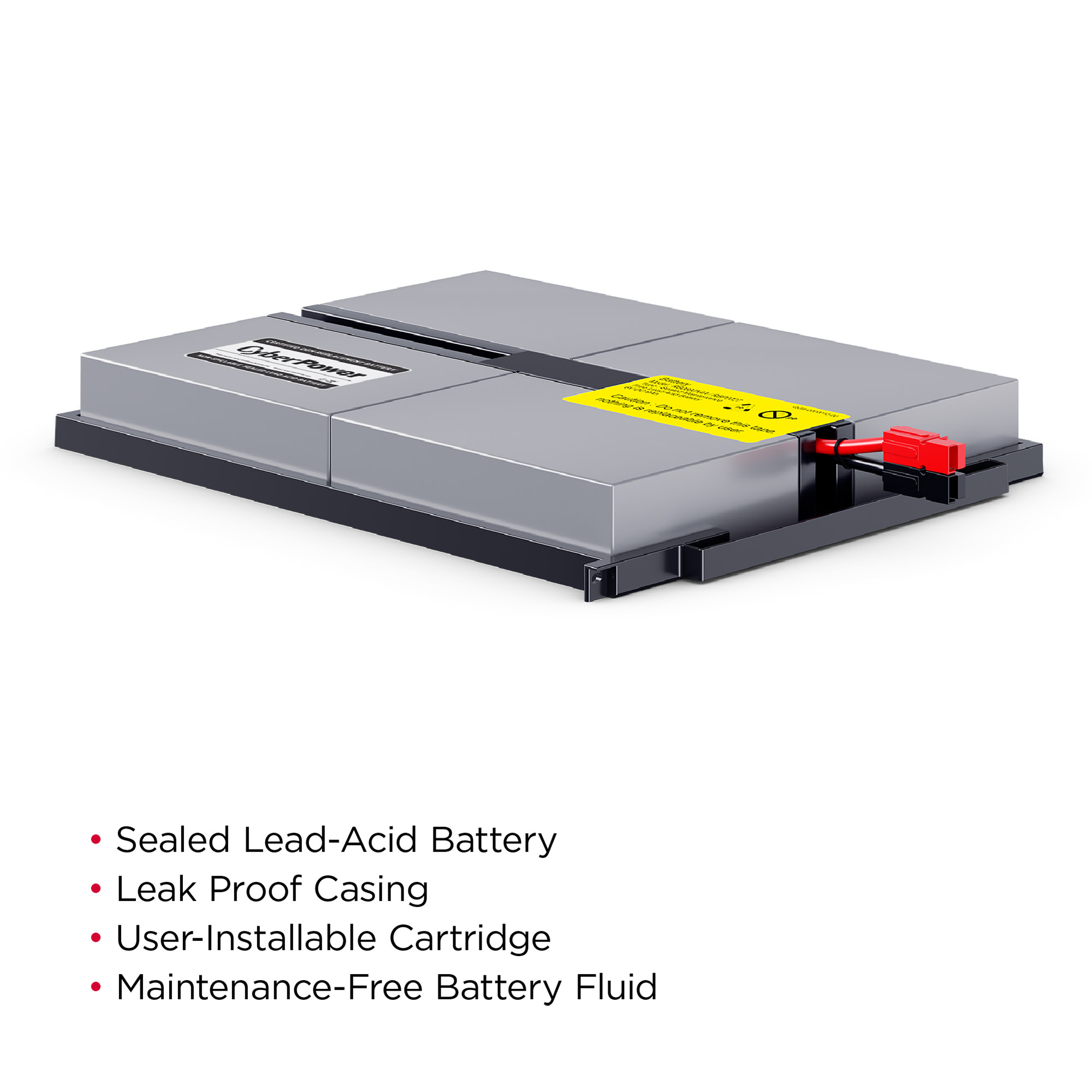 The RB0690X4A UPS Replacement Battery Cartridge restores life to CyberPower UPS systems that have weak or completely depleted internal batteries. The RB0690X4A contains four 6V/9AH replacement batteries, certified to meet or exceed original manufacturer specifications. These leak-proof, sealed lead-acid batteries never require replacement fluid. The pre-assembled cartridge installs easily into your CyberPower UPS system and is shipped with reusable packaging which can be used for delivering expired batteries to a suitable recycling center. The RB0690X4A comes with instructions, recycling information, and an eighteen-month warranty.