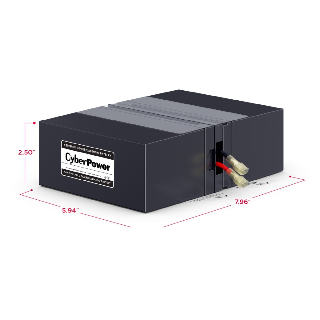 The RB1280X2D UPS Replacement Battery Cartridge restores life to CyberPower UPS systems that have weak or completely depleted internal batteries. The RB1280X2D contains two 12V/7.2AH batteries, certified to meet or exceed original manufacturer specifications. These leak-proof, sealed lead-acid batteries never require replacement fluid. The pre-assembled cartridge installs easily into your CyberPower UPS system and is shipped with reusable packaging which can be used for delivering expired batteries to a suitable recycling center. The RB1280X2D comes with instructions, recycling information, and an eighteen-month warranty.