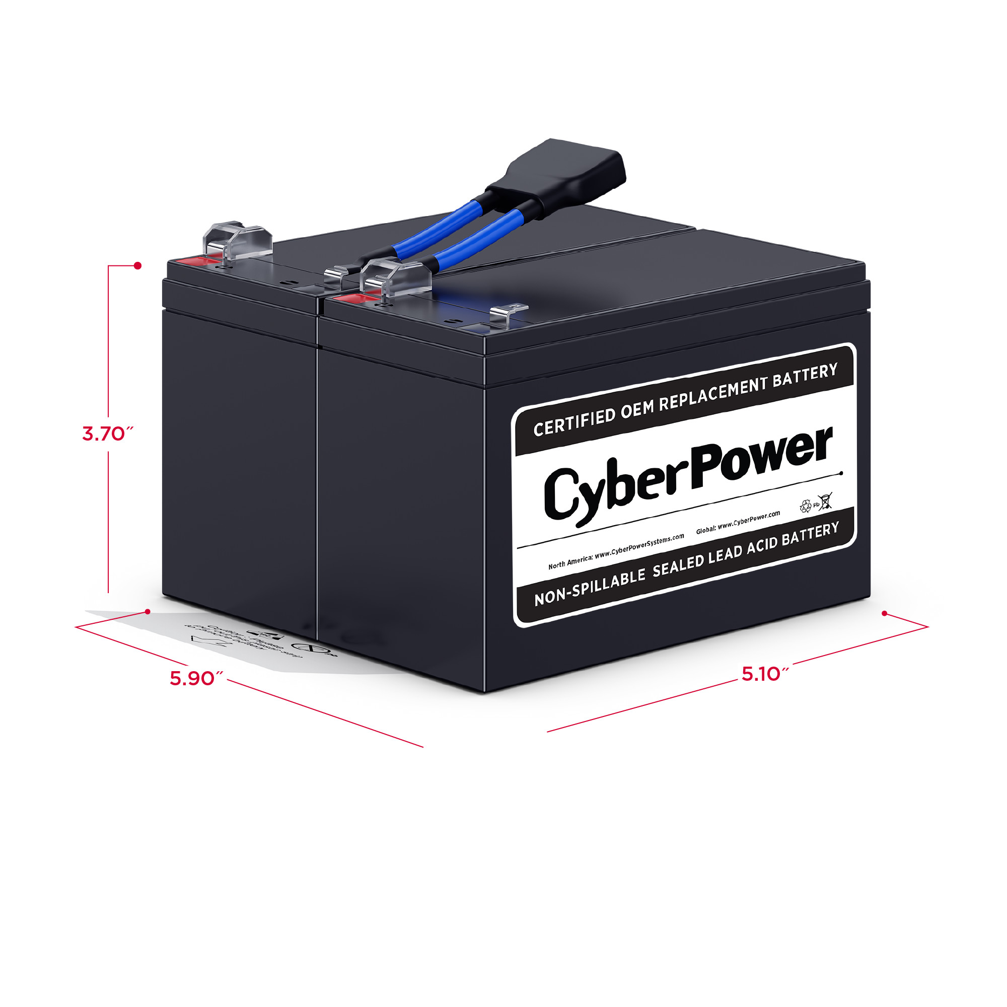 The RB1290X2B UPS Replacement Battery Cartridge restores life to CyberPower UPS systems that have weak or completely depleted internal batteries. The RB1290X2B contains two 12V/9Ah batteries, certified to meet or exceed original manufacturer specifications. This leak-proof, sealed lead-acid battery never requires replacement fluid. The batteries install easily into your CyberPower UPS system and are shipped with reusable packaging for delivering expired batteries to a suitable recycling center. The RB1290X2B comes with instructions, recycling information, and an eighteen-month warranty.