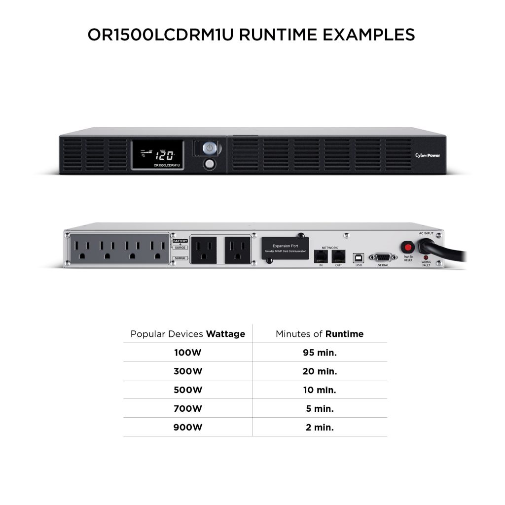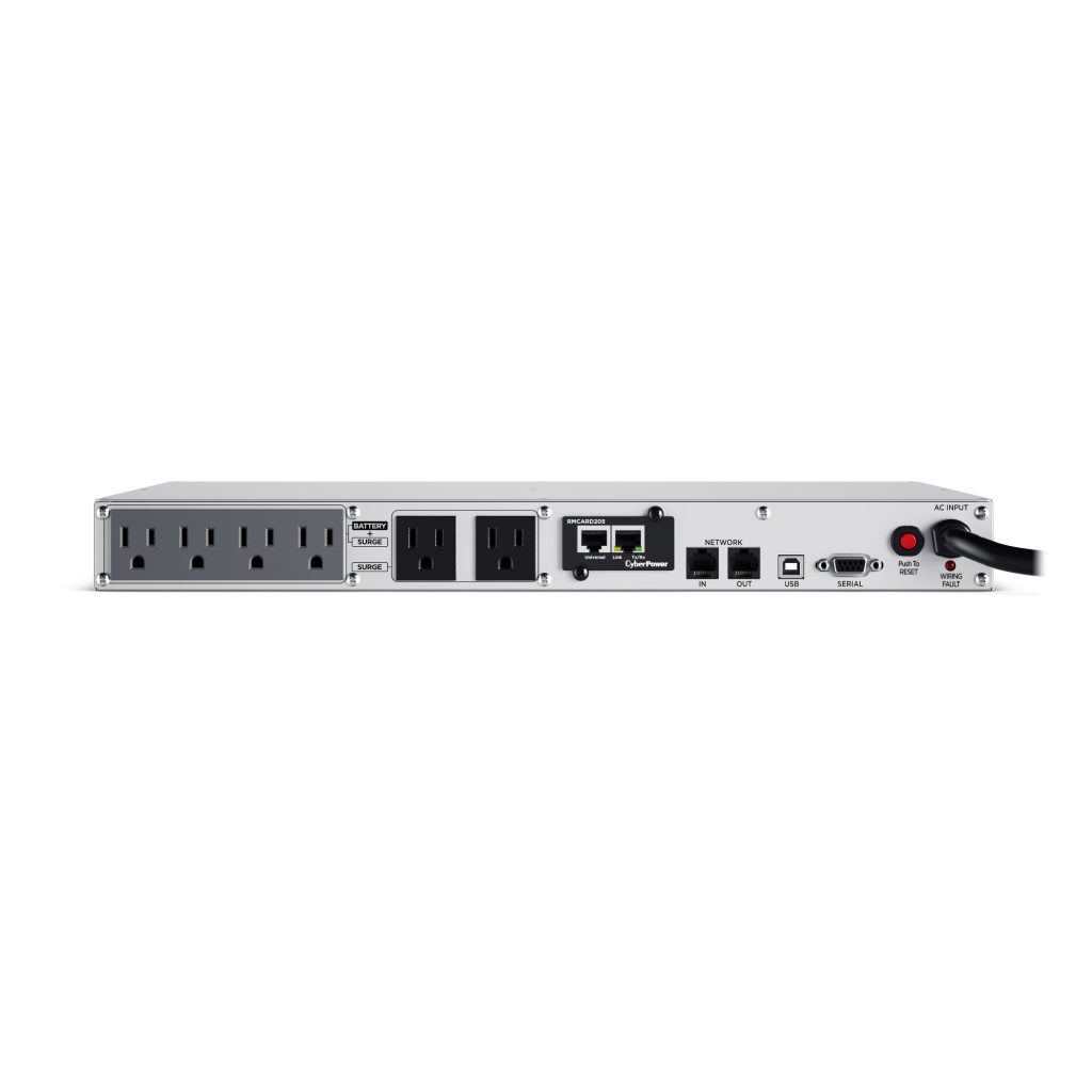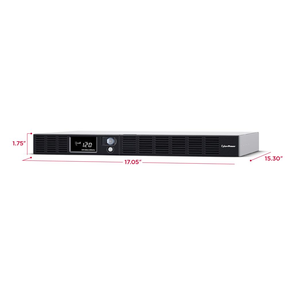 A rackmount UPS with line interactive topology, the CyberPower Smart App LCD OR1500LCDRM1U provides battery backup (using simulated sine wave output) and surge protection for department servers, workgroup servers, workstations, network devices, and telecom installations without active PFC power supplies. The OR1500LCDRM1U uses Automatic Voltage Regulation (AVR) to correct minor power fluctuations without switching to battery power, which extends battery life. AVR is essential in areas where power fluctuations occur frequently.