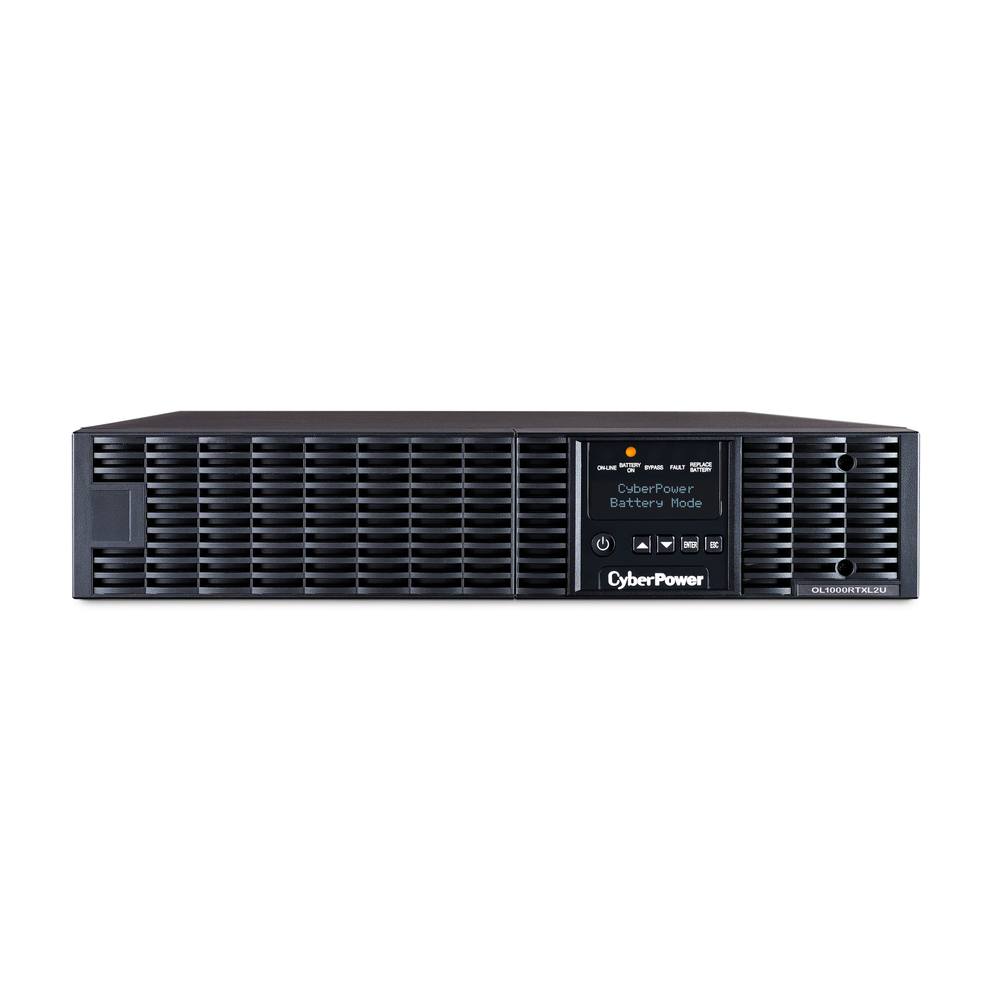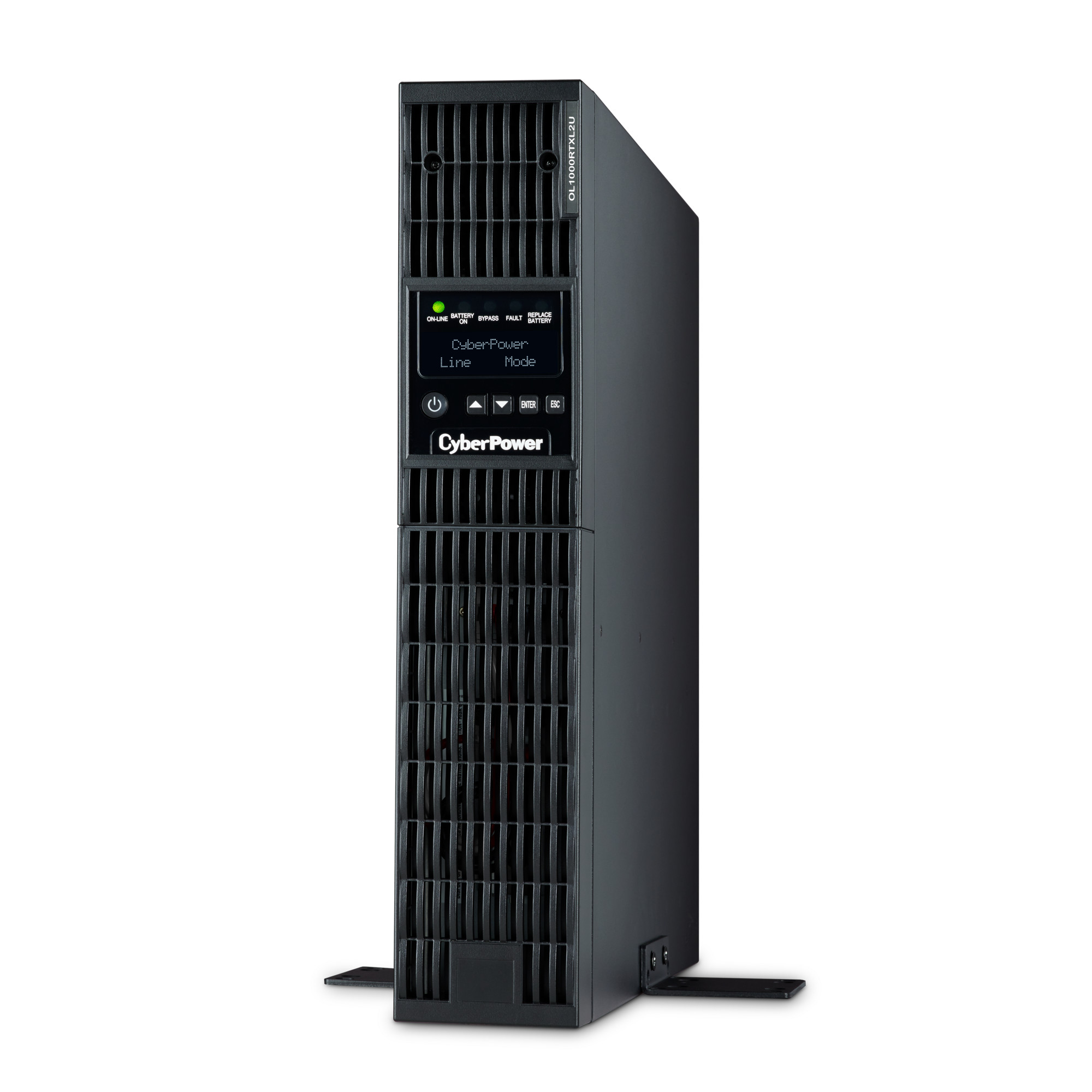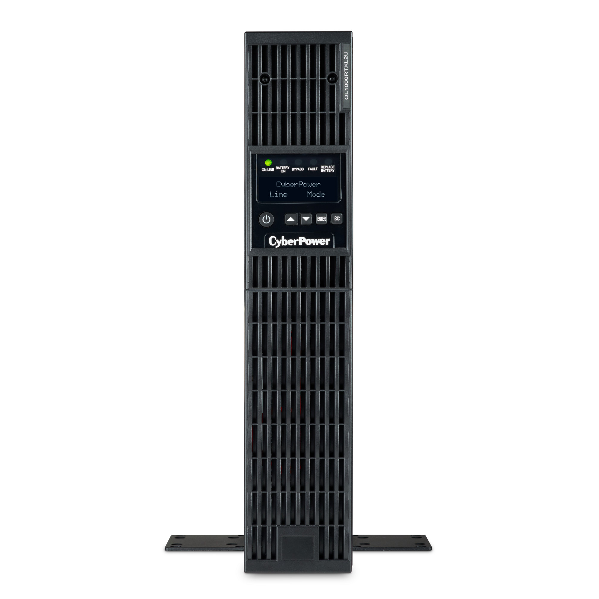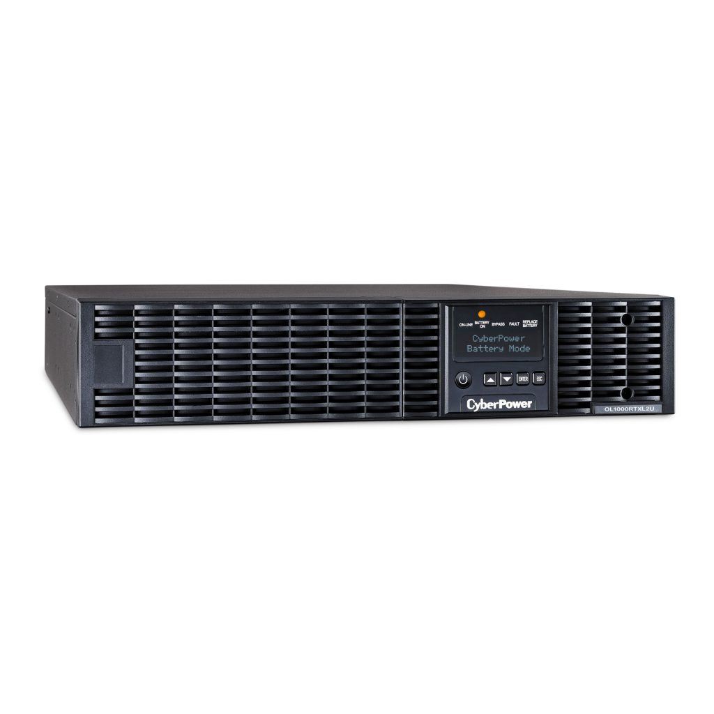 The CyberPower OL1000RTXL2U is a rack/tower UPS with double conversion topology. It provides sine wave output to critical applications and equipment that require seamless power correction. The Extended Battery Module (EBM) expands runtime, and Fast Charge Technology restores full backup power faster. This model comes with an extendable LCD control panel, Smart Battery Management charging technology, and energy-saving GreenPower UPS™ ECO Mode.