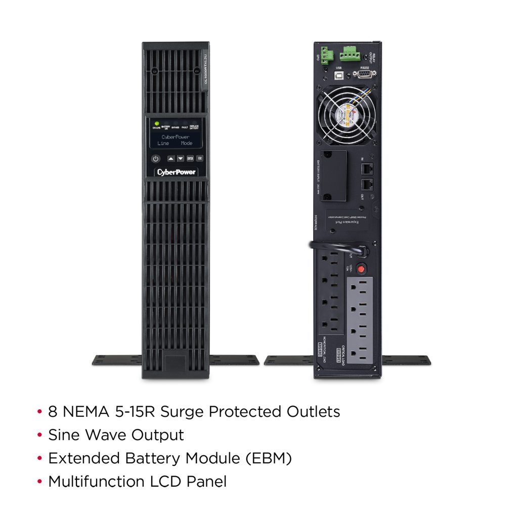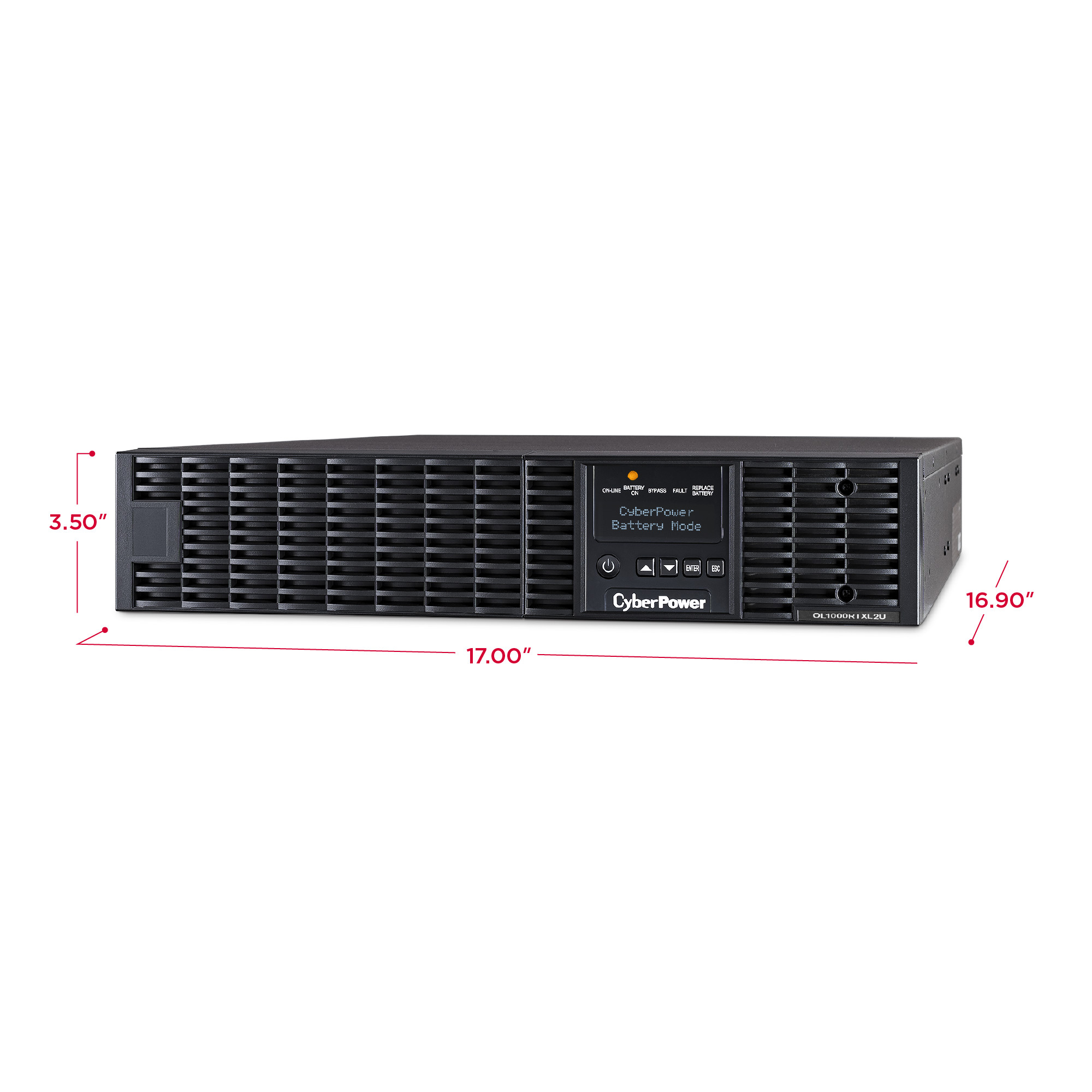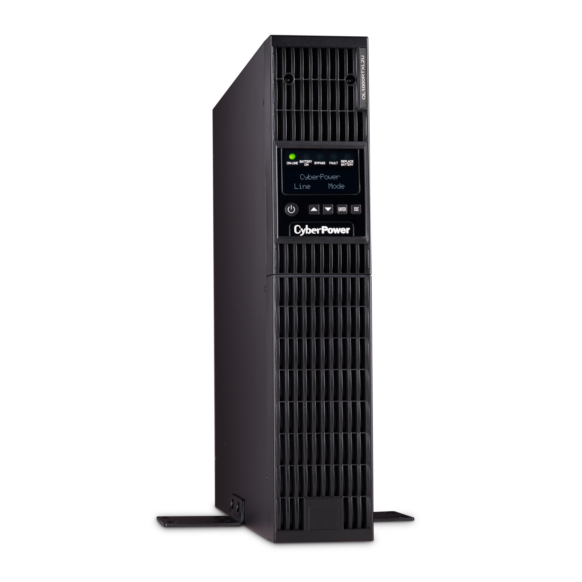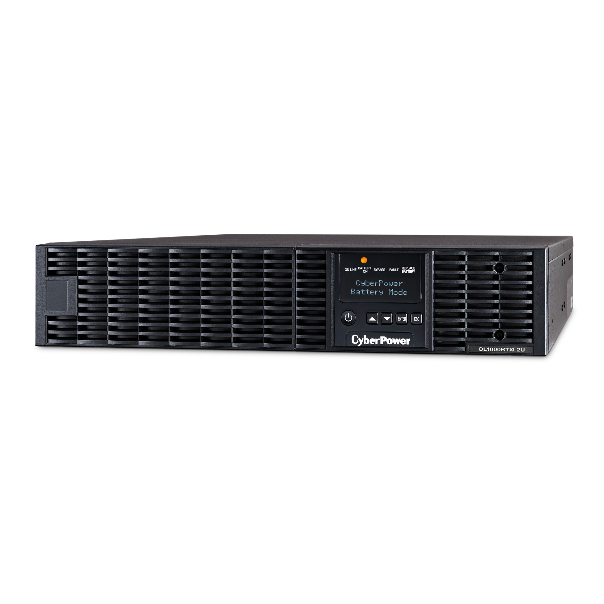 The CyberPower OL1000RTXL2U is a rack/tower UPS with double conversion topology. It provides sine wave output to critical applications and equipment that require seamless power correction. The Extended Battery Module (EBM) expands runtime, and Fast Charge Technology restores full backup power faster. This model comes with an extendable LCD control panel, Smart Battery Management charging technology, and energy-saving GreenPower UPS™ ECO Mode.