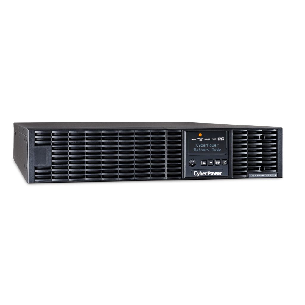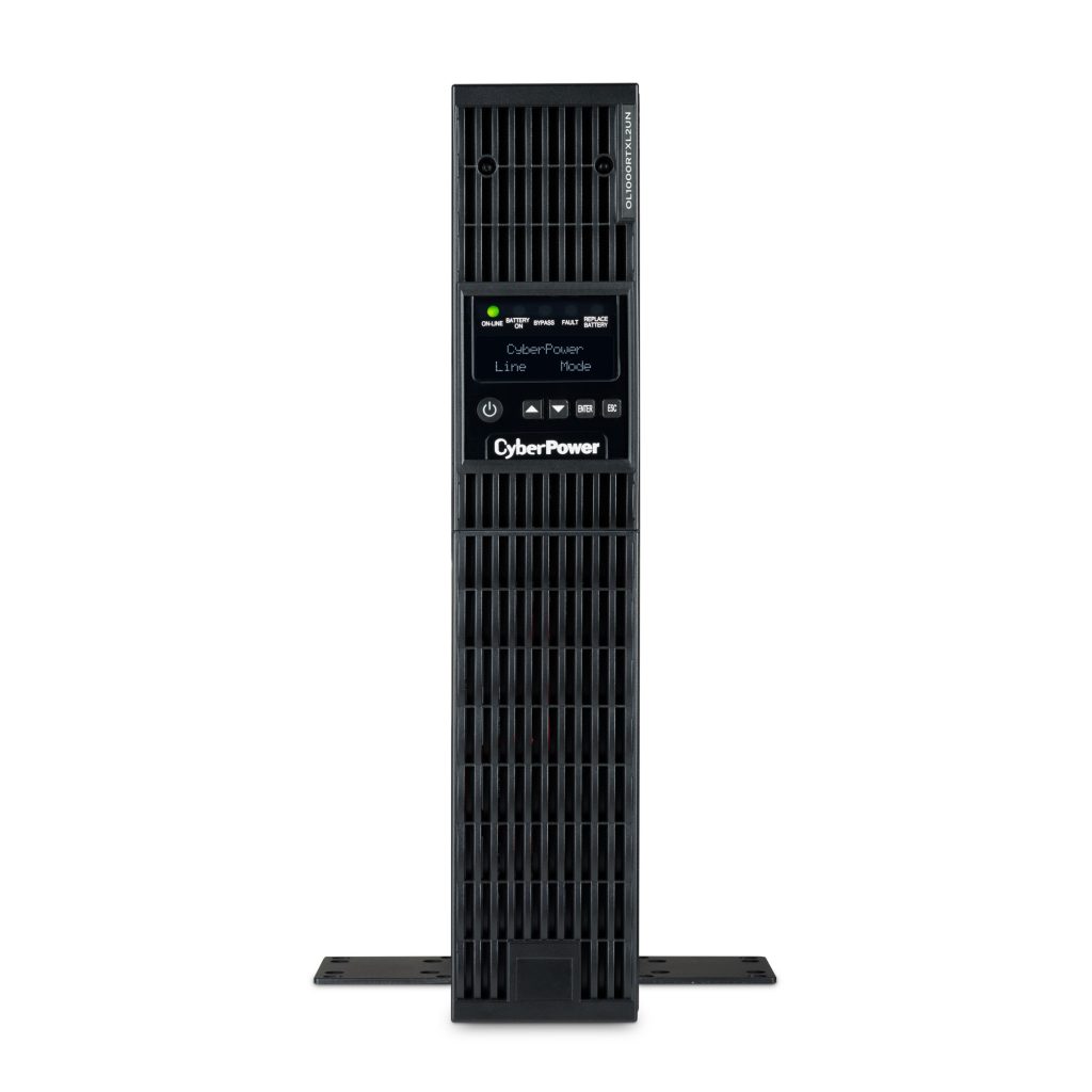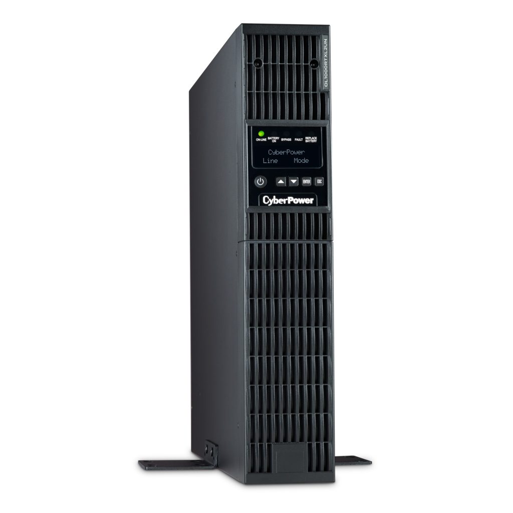 The CyberPower OL1000RTXL2UN is a rack/tower UPS with double conversion topology. It provides sine wave output to critical applications and equipment that require seamless power correction. The Extended Battery Module (EBM) expands runtime, and Fast Charge Technology restores full backup power faster. This model comes with an extendable LCD control panel, Smart Battery Management charging technology, and energy-saving GreenPower UPS™ ECO Mode.