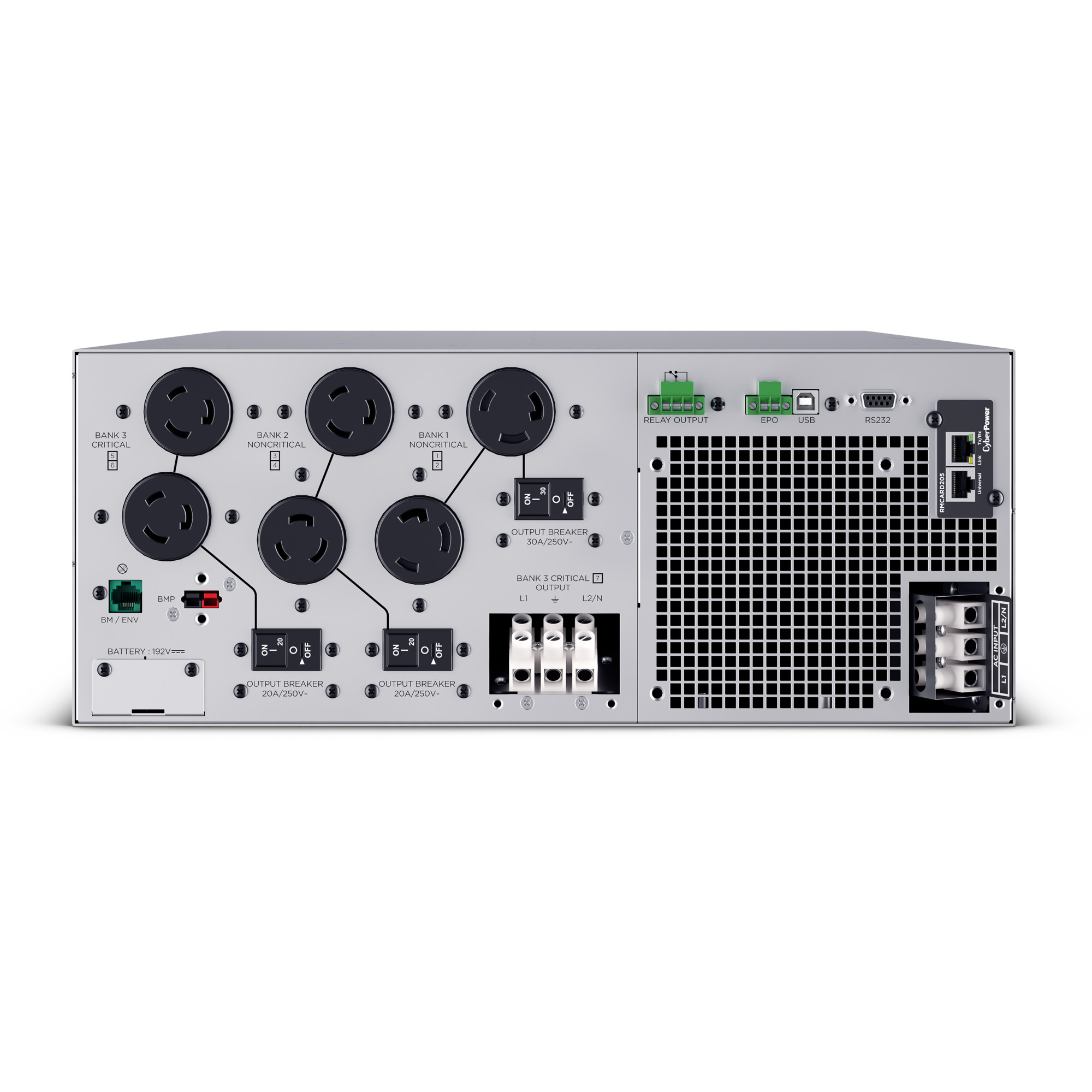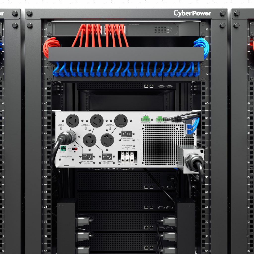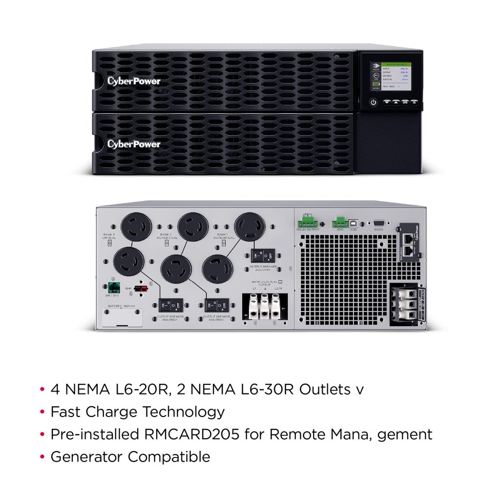 The CyberPower Smart App Online OL10KRTHD high-density design offers more power in less space. In fact, it can be configured into 4U of rack space or as a tower, compared to 6U for similar competitive UPS models – giving you more room to grow. The OL10KRTHD features double-conversion topology for seamless power protection and a pre-installed RMCARD205.
