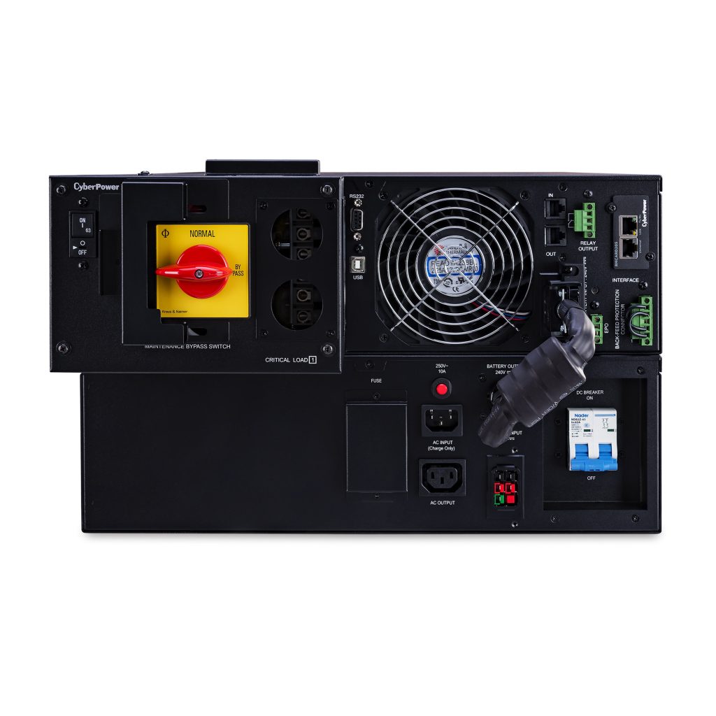 The CyberPower Smart App Online OL10KRTHW is a 6U rack/tower UPS featuring double-conversion topology for seamless power protection, an intuitive maintenance bypass switch design, and a pre-installed RMCARD205. Ensure maximum efficiency and capacity output with a Power Factor rating (PF) of 1. The energy-saving GreenPower UPS™ ECO Mode enables up to 97% efficiency while reducing power consumption and thermal dissipation. Smart battery management charging technology increases battery life up to 50% and replenishes battery charge from 0-90% in five hours.
