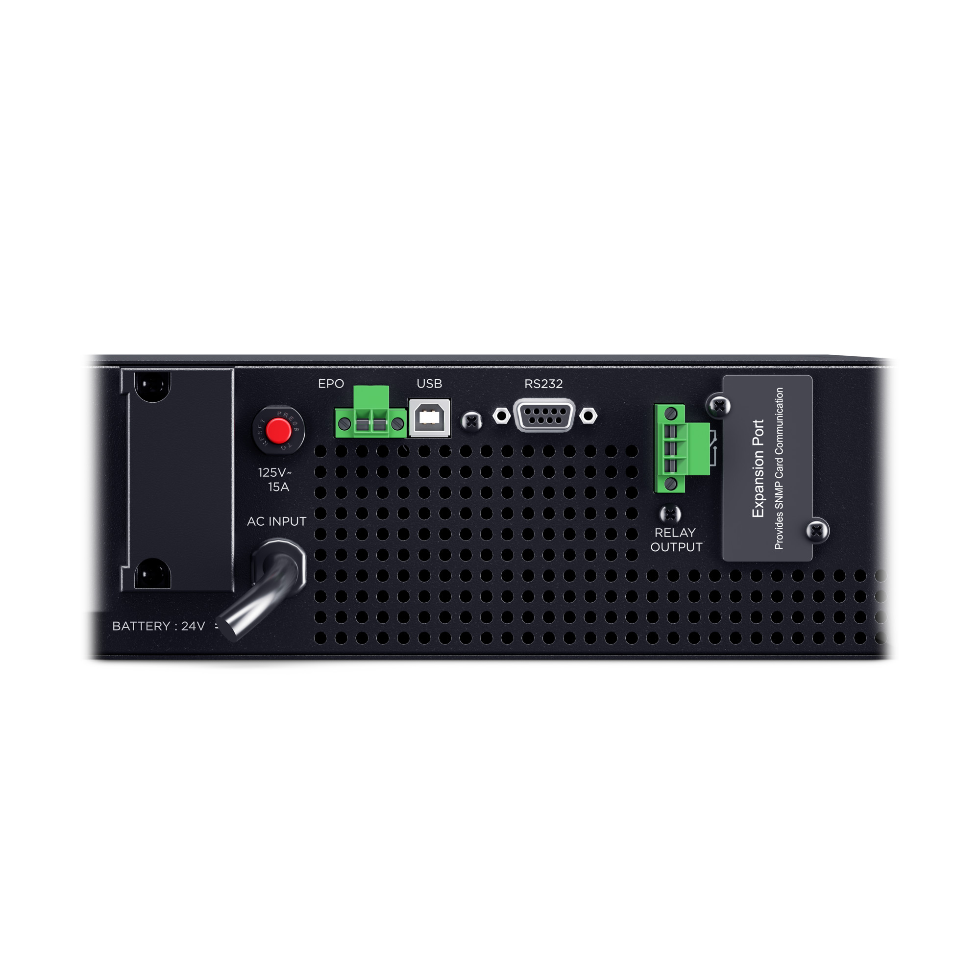 The OL1KRTHD features double-conversion topology for seamless power protection, individual outlet control, and an optional RMCARD205.