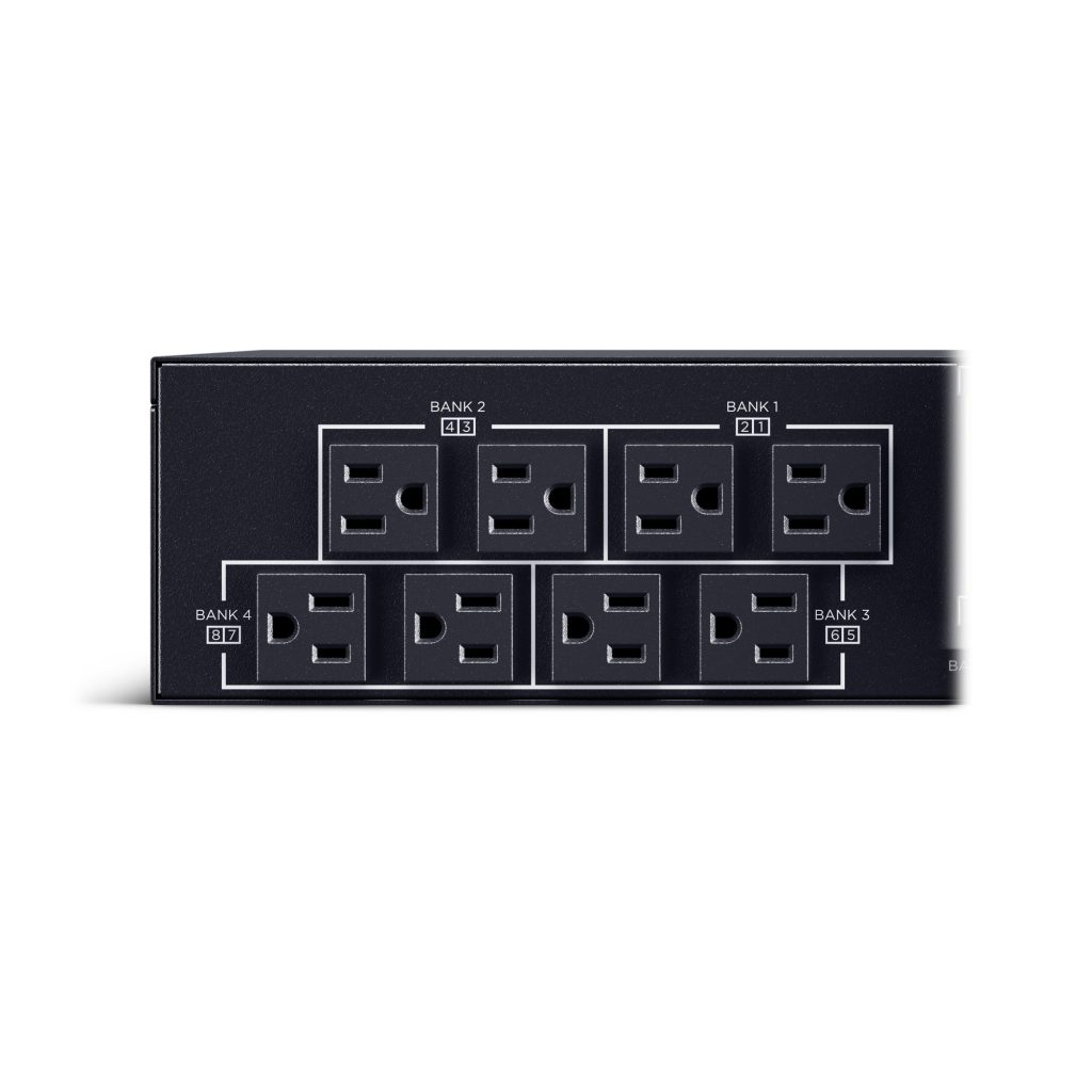 • Outlet types: 8 × NEMA 5-15R, Switched in pairs