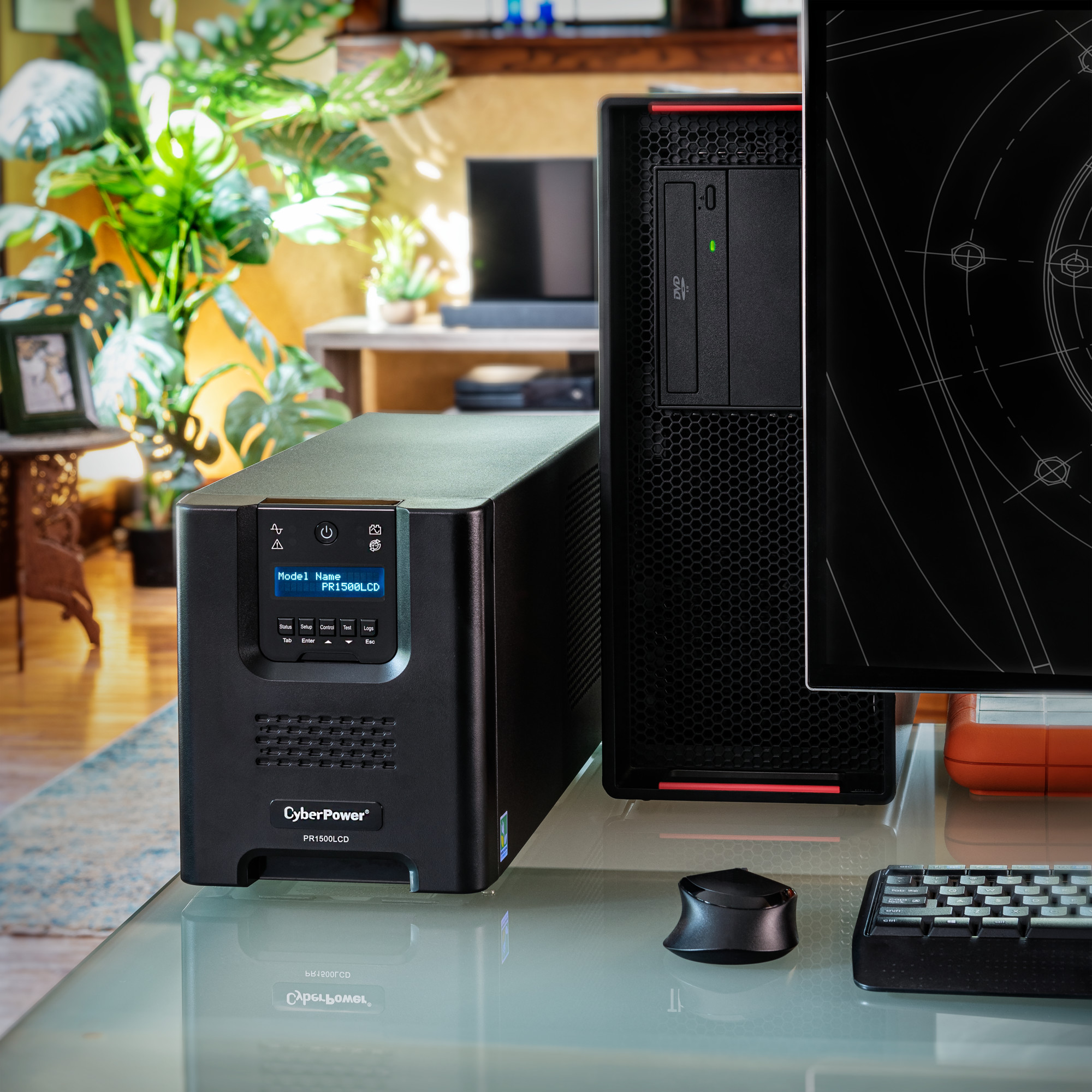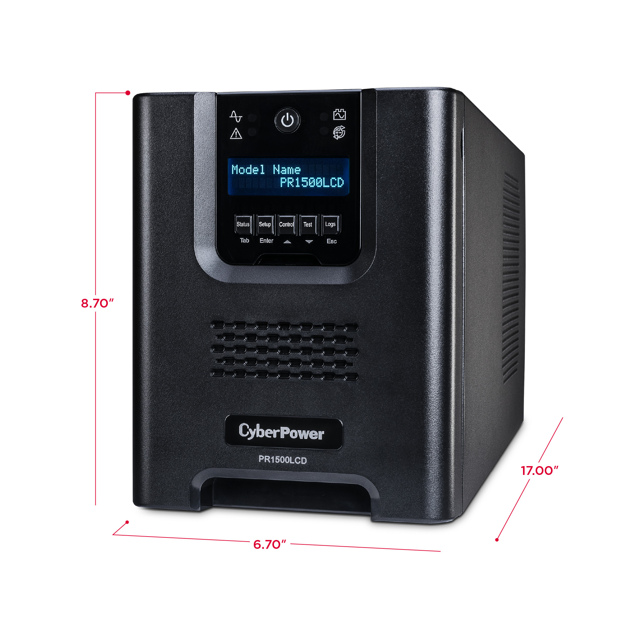 A mini-tower UPS with line interactive topology, the CyberPower Smart App Sinewave PR1500LCD provides battery backup, power protection (using sine wave output), and surge protection for corporate servers, department servers, storage appliances, network devices, and telecom installations requiring Active PFC power source compatibility. The PR1500LCD uses Automatic Voltage Regulation (AVR) to correct minor power fluctuations without switching to battery power, which extends battery life. AVR is essential in areas where power fluctuations occur frequently. The PR1500LCD comes with a three-year warranty and a $375,000 Connected Equipment Guarantee.