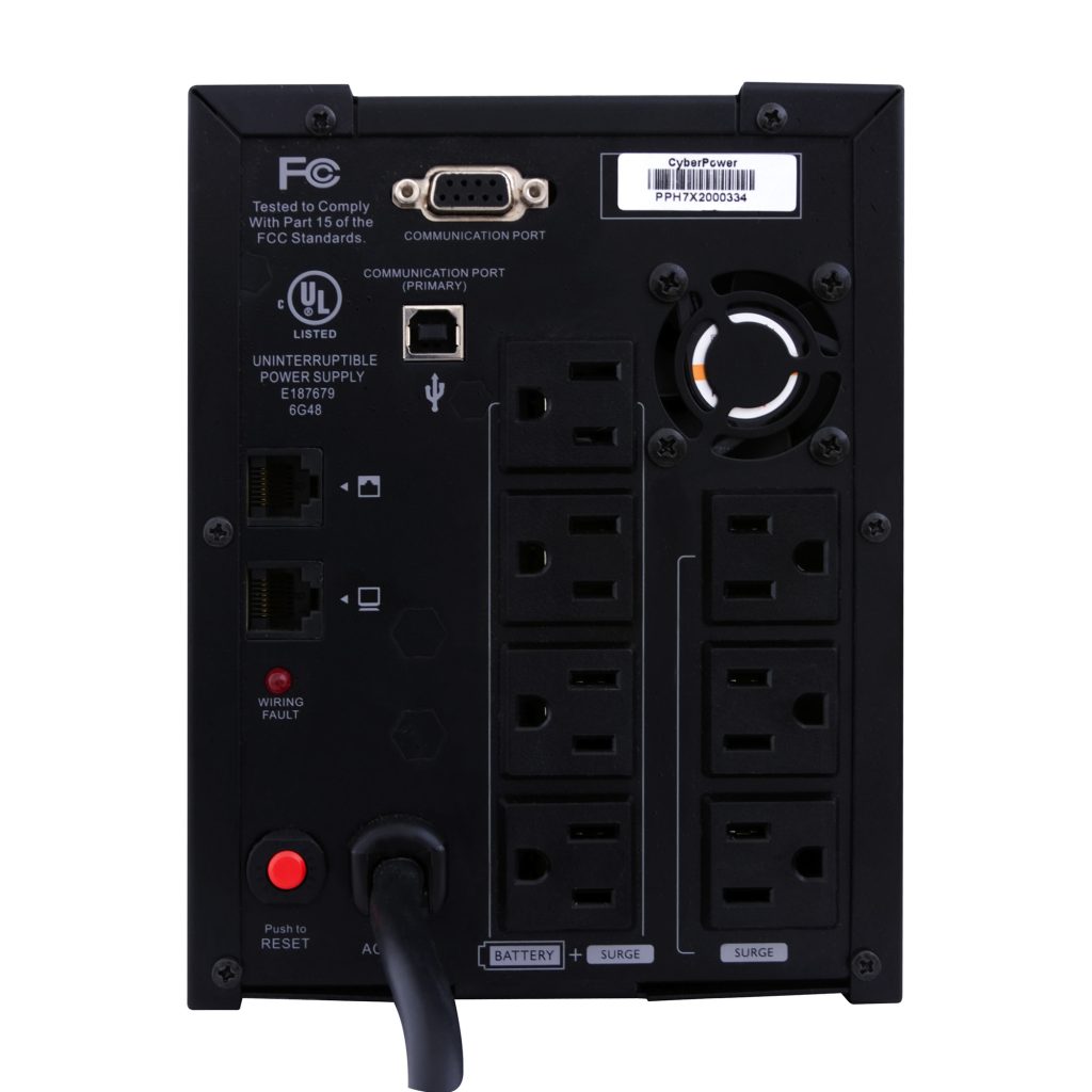 A tower UPS with line interactive topology, the CyberPower Smart App Sinewave PP1500SWT4 provides battery backup, power protection (using sine wave output), and surge protection for corporate servers, department servers, storage appliances, network devices, and telecom installations requiring Active PFC power source compatibility. The PP1500SWT4 uses Automatic Voltage Regulation (AVR) to correct minor power fluctuations without switching to battery power, which extends battery life. AVR is essential in areas where power fluctuations occur frequently. The PP1500SWT4 comes with a three-year warranty and a $350,000 Connected Equipment Guarantee.