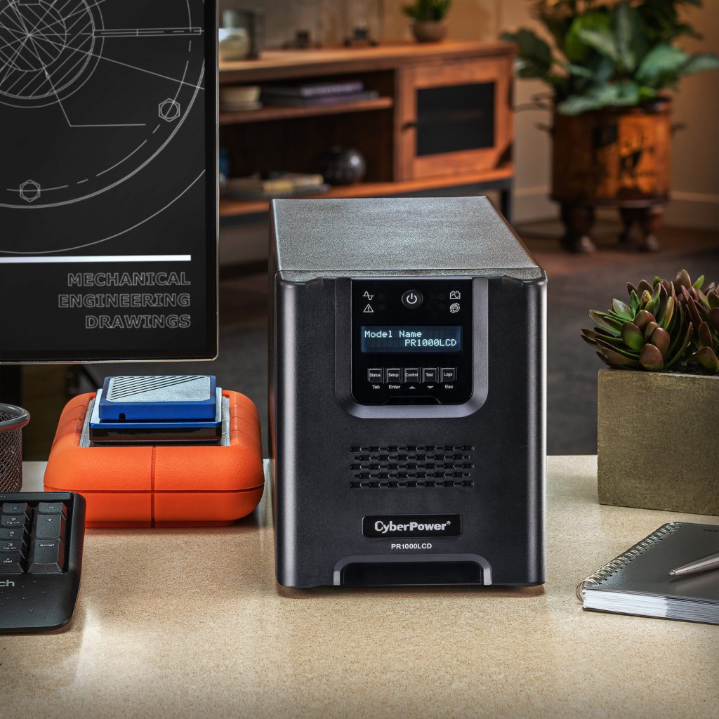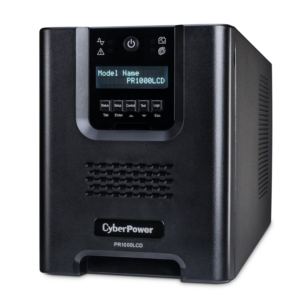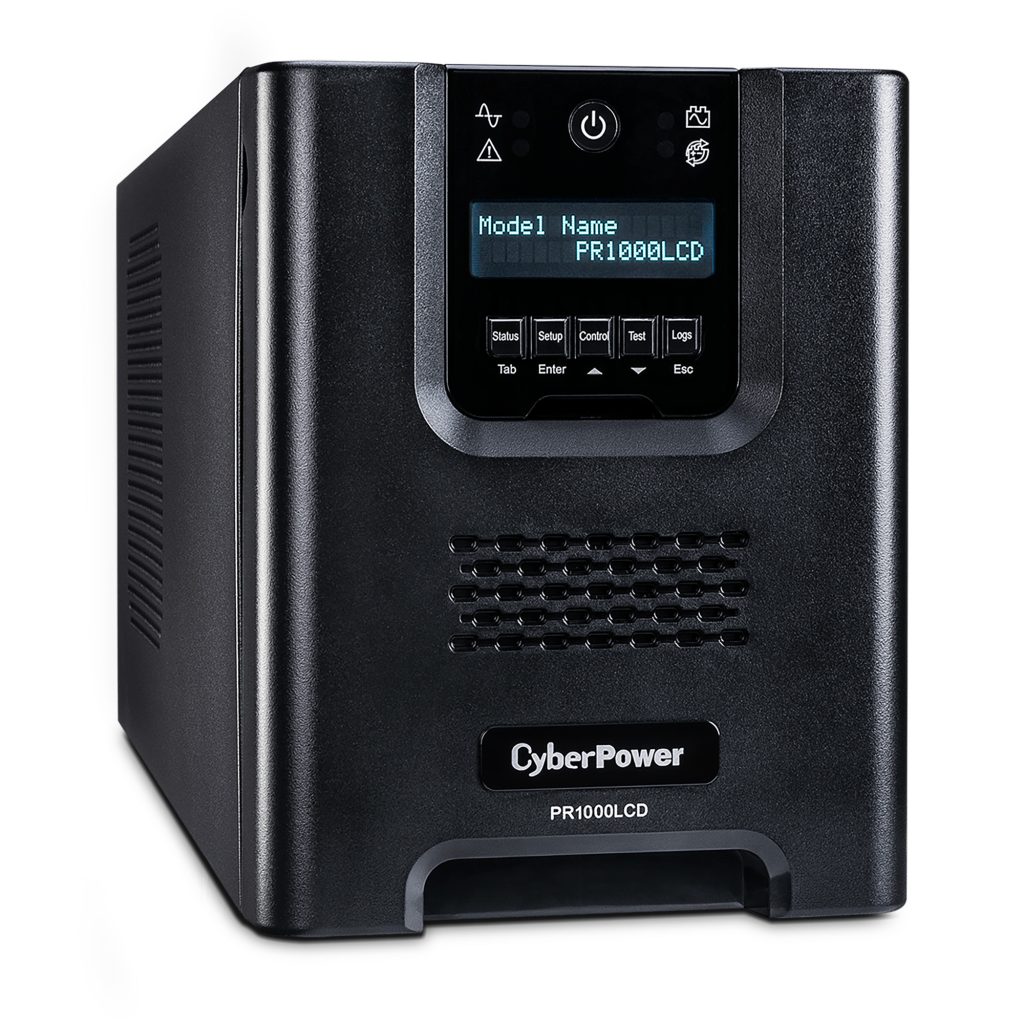 A mini-tower UPS with line interactive topology, the CyberPower Smart App Sinewave PR1000LCD provides battery backup, power protection (using sine wave output), and surge protection for corporate servers, department servers, storage appliances, network devices, and telecom installations requiring Active PFC power source compatibility. The PR1000LCD uses Automatic Voltage Regulation (AVR) to correct minor power fluctuations without switching to battery power, which extends battery life. AVR is essential in areas where power fluctuations occur frequently. The PR1000LCD comes with a three-year warranty and a $375,000 Connected Equipment Guarantee.