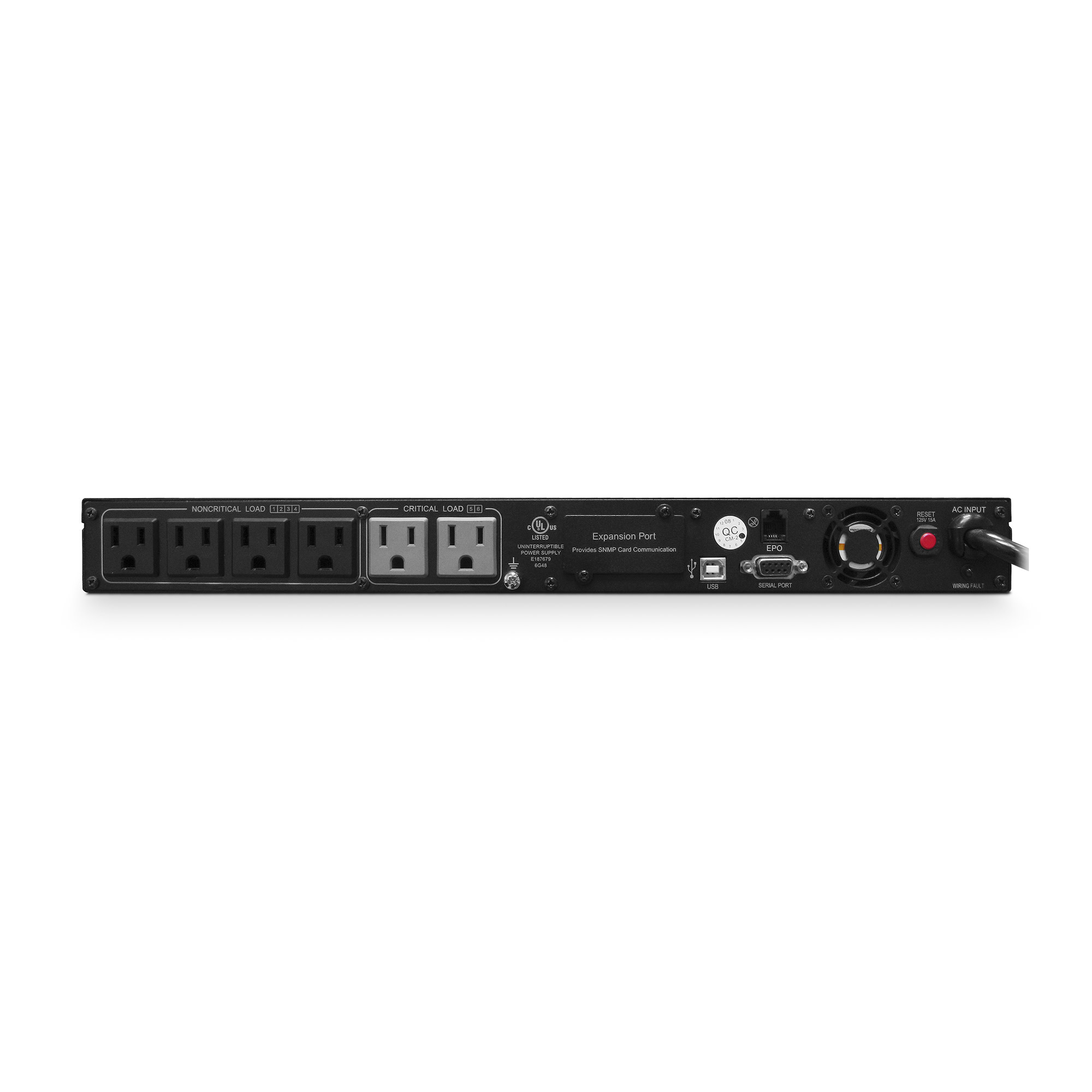 A rackmount UPS with line interactive topology, the CyberPower Smart App Sinewave PR1000LCDRM1U provides battery backup, power protection (using sine wave output), and surge protection for corporate servers, department servers, storage appliances, network devices, and telecom installations requiring Active PFC power source compatibility. The PR1000LCDRM1U uses Automatic Voltage Regulation (AVR) to correct minor power fluctuations without switching to battery power, which extends battery life. AVR is essential in areas where power fluctuations occur frequently. The PR1000LCDRM1U comes with a three-year warranty and a $400,000 Connected Equipment Guarantee.