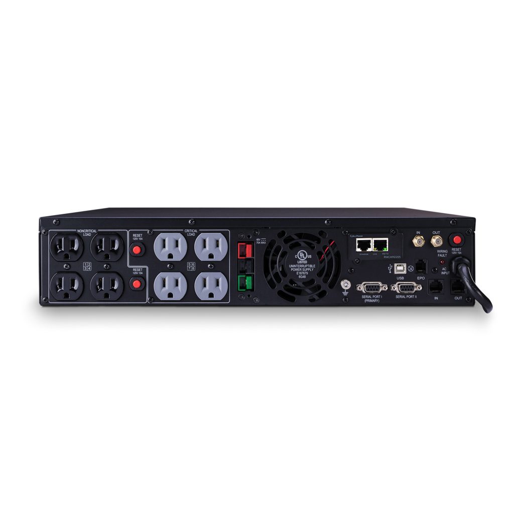A rack/tower convertible UPS with line interactive topology and a pre-installed SNMP card, the CyberPower Smart App Sinewave PR1500LCDRTXL2UN provides battery backup, power protection (using sine wave output), and surge protection for corporate servers, department servers, storage appliances, network devices, and telecom installations requiring Active PFC power source compatibility. The PR1500LCDRTXL2UN uses Automatic Voltage Regulation (AVR) to correct minor power fluctuations without switching to battery power, which extends battery life. AVR is essential in areas where power fluctuations occur frequently. The RMCARD205, a remote management card that provides remote management and configuration of the UPS via a standard Web browser or network management system (NMS) comes installed. The PR1500LCDRTXL2UN comes with a three-year warranty and a $400,000 Connected Equipment Guarantee.