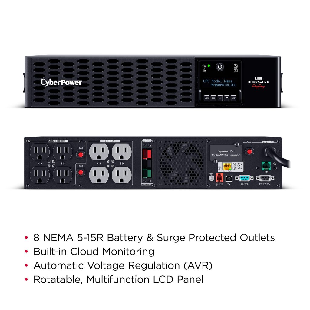 The PR1500RTXL2UC is a Smart App Sinewave rack/tower convertible UPS with line-interactive topology, surge protection, and battery backup. CyberPower’s Smart App Sinewave series has sine wave output to eliminate power gaps that can be detected by sensitive equipment and cause unexpected shutdowns.