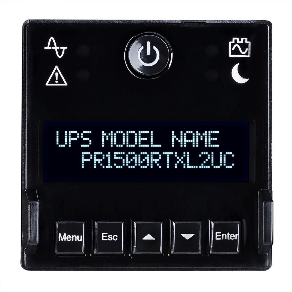 The Smart App Sinewave PR1500RTXL2UC improves battery life through battery equalization technology and Automatic Voltage Regulation (AVR), which corrects minor power fluctuations without switching to battery power. The enhanced chassis design with an easy-to-access toolless front panel, captive screws for battery panel access, and color-coded rear panel make battery changes and installations simple and fast. The PR1500RTXL2UC also has an innovative LCD panel that rotates 90°, tilts for a better viewing angle, and provides information on 47 different settings including UPS stats, UPS setup and control management, and testing options.