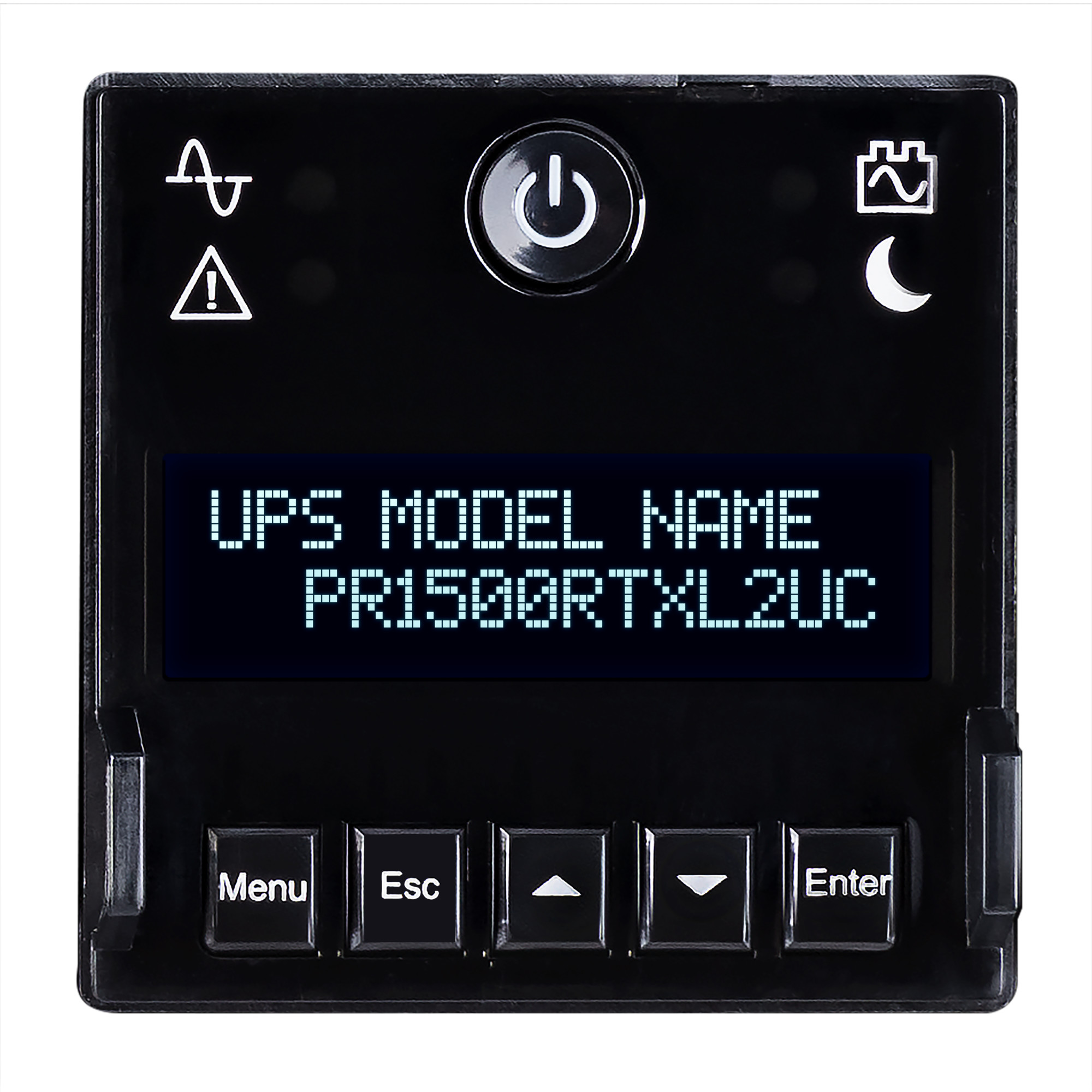 Allows UPS batteries to return to full capacity more rapidly by using a built-in charger inside of each UPS or EBM. - Rotatable Multifunction LCD Panel