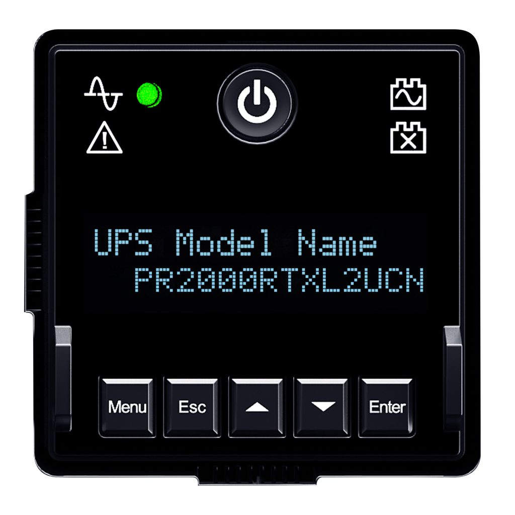 Allows UPS batteries to return to full capacity more rapidly by using a built-in charger inside of each UPS or EBM. - Rotatable Multifunction LCD Panel