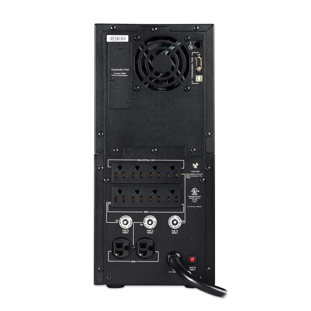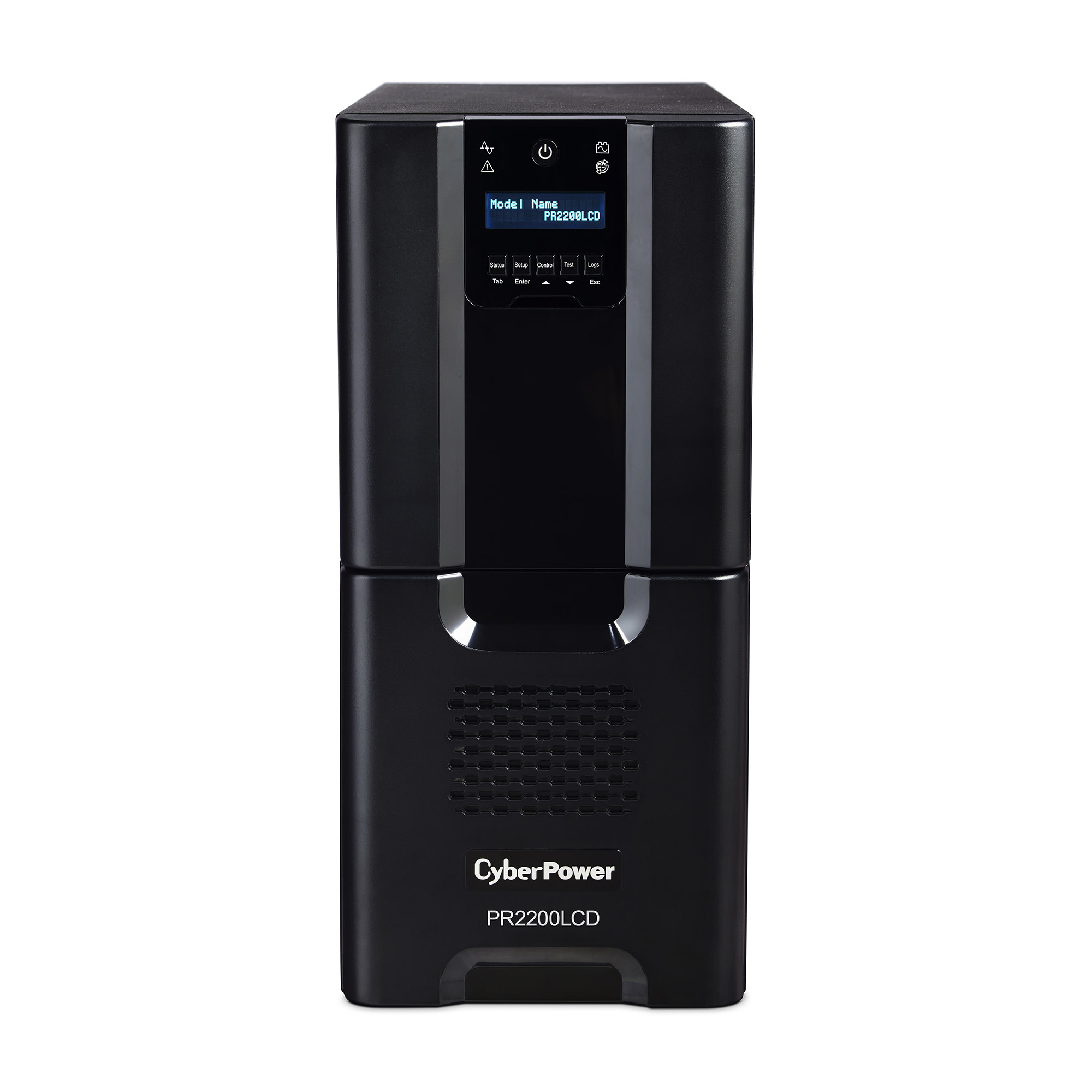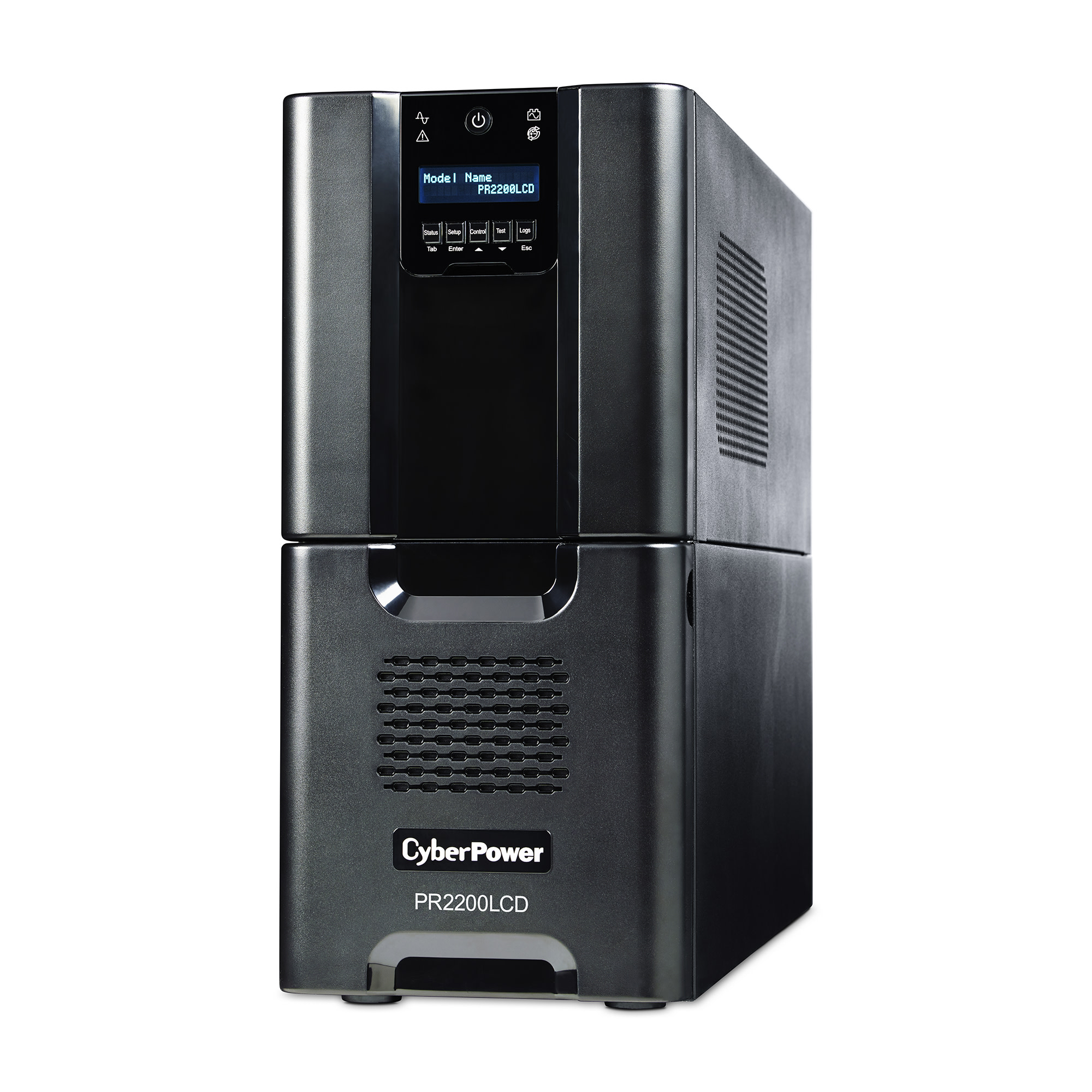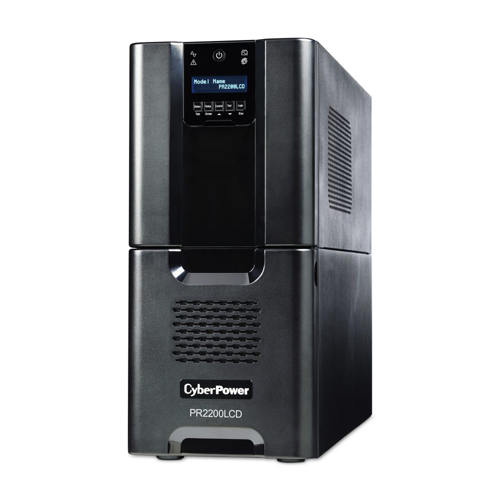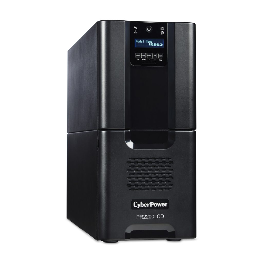 A tower UPS with line interactive topology, the CyberPower Smart App Sinewave PR2200LCD provides battery backup, power protection (using sine wave output), and surge protection for corporate servers, department servers, storage appliances, network devices, and telecom installations requiring Active PFC power source compatibility. The PR2200LCD uses Automatic Voltage Regulation (AVR) to correct minor power fluctuations without switching to battery power, which extends battery life. AVR is essential in areas where power fluctuations occur frequently. The PR2200LCD comes with a three-year warranty and a $375,000 Connected Equipment Guarantee.