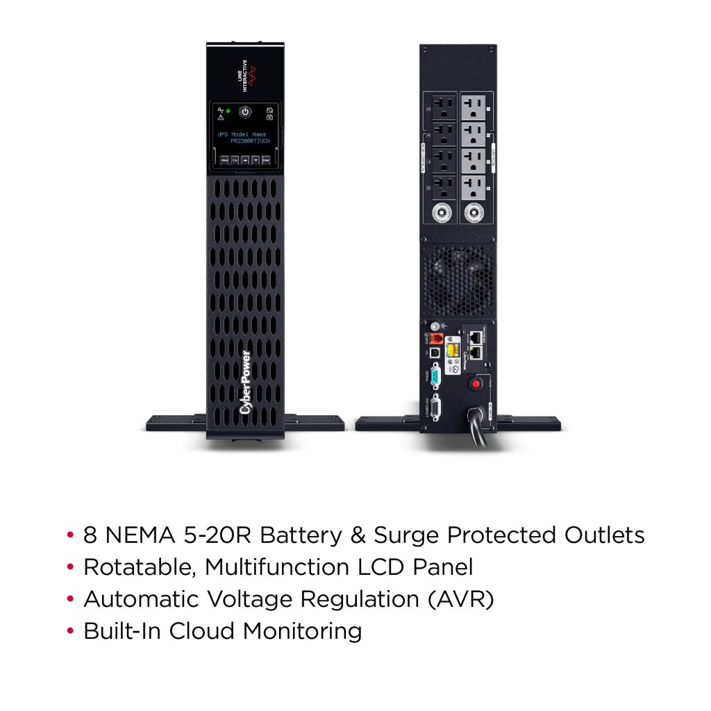 The PR2200RT2UCN is a Smart App Sinewave rack/tower convertible UPS with line-interactive topology, surge protection, and battery backup. CyberPower’s Smart App Sinewave series creates a sine wave output devoid of power gaps which could cause unexpected shutdowns of sensitive equipment.