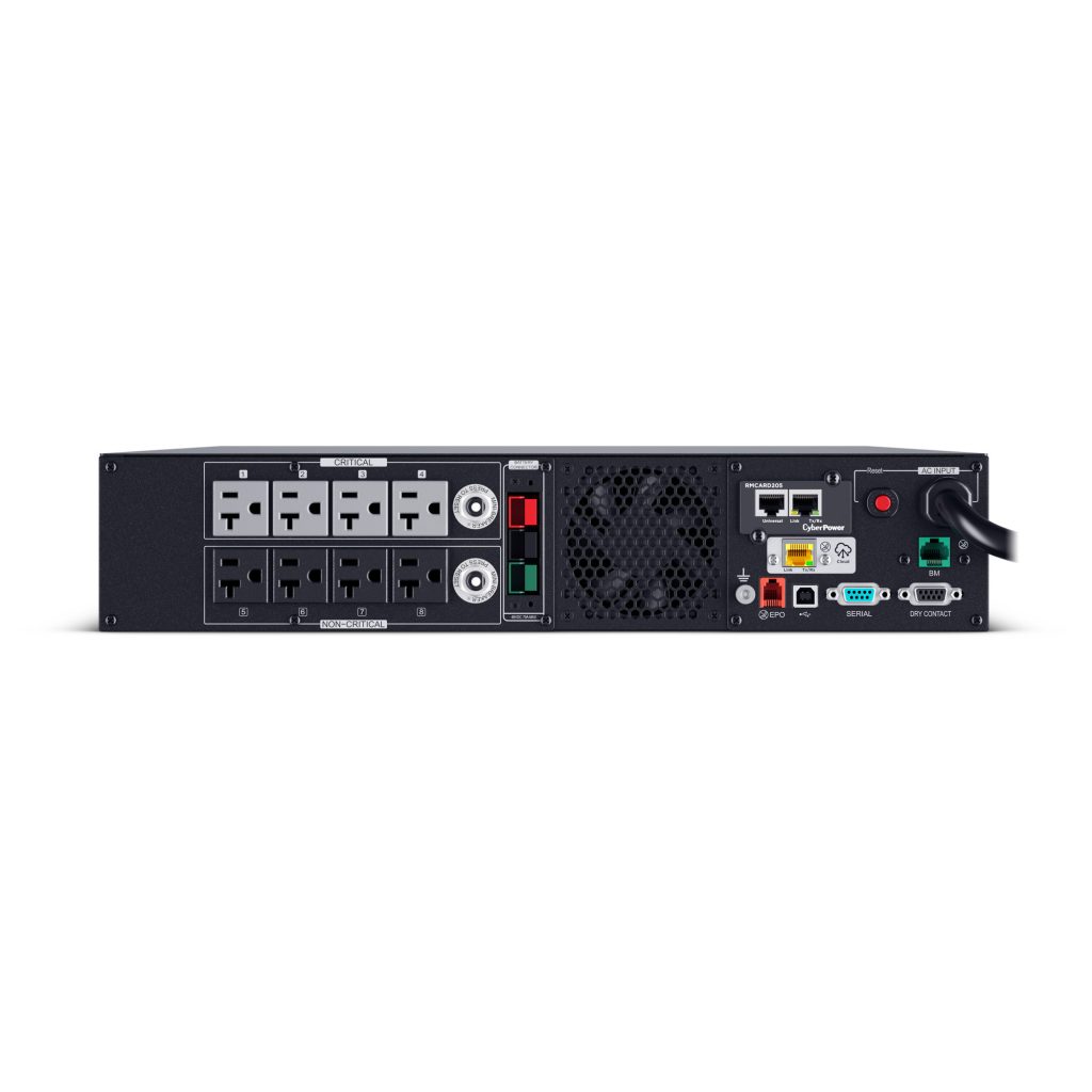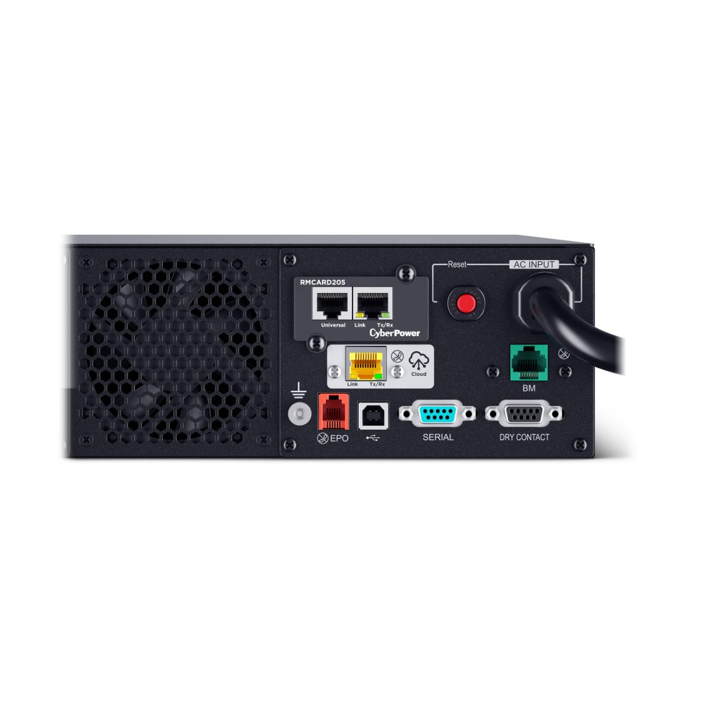 This model accepts the BP48VP2U03 Extended Battery Module (EBM) for expanded runtime during power outages and includes built-in cloud monitoring and pre-installed RMCARD205 network management card for remote management and control via a standard web browser or network management system.