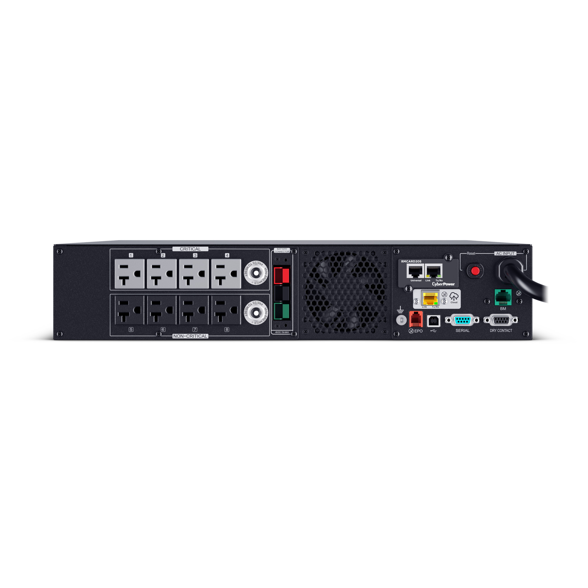 The UPS generates energy that is identical to, or cleaner than the utility company’s power grid. Benefits include low total harmonic distortion, minimal electrical noise, and optimal line clarity. - RMCARD205 Factory Installed