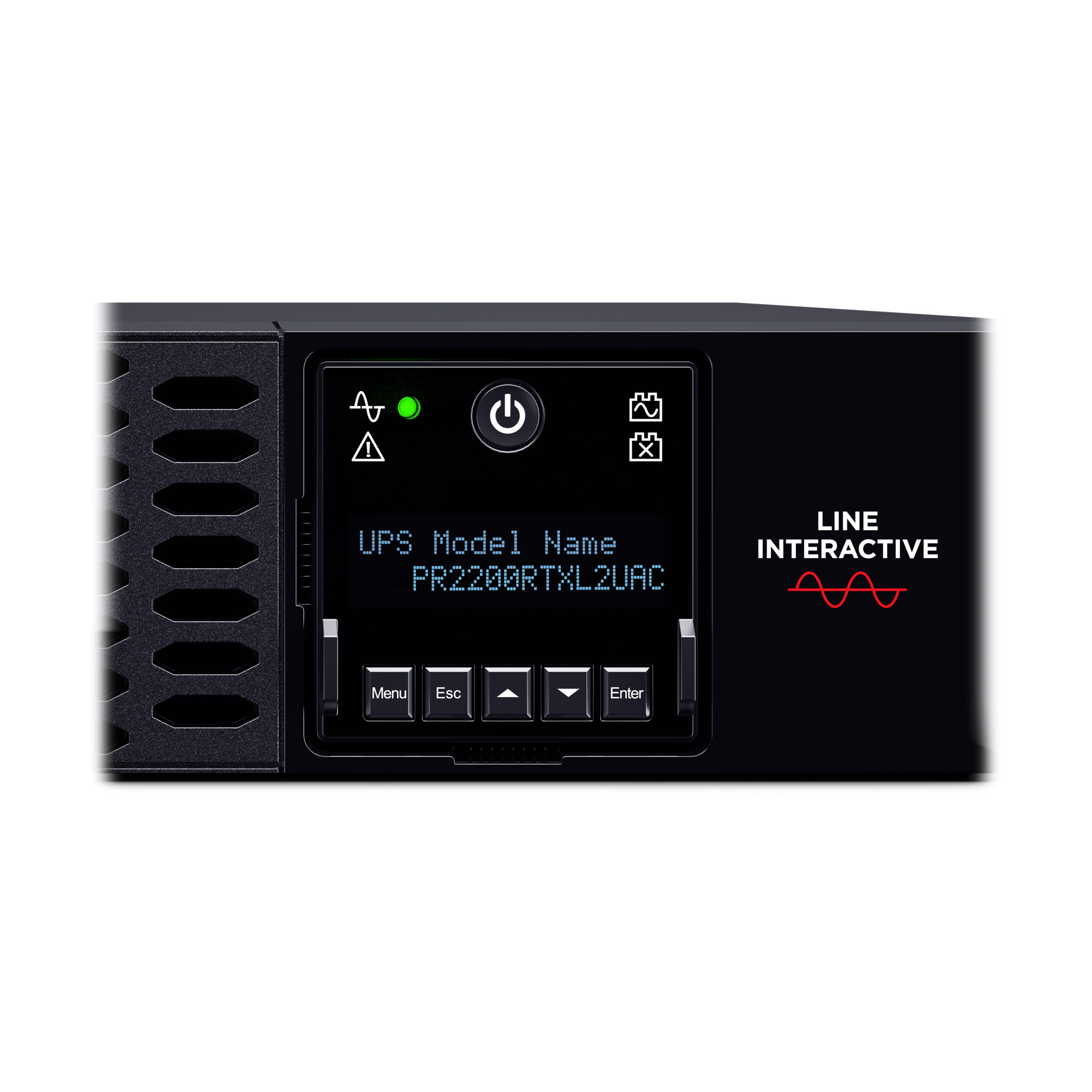 Allows UPS batteries to return to full capacity more rapidly by using a built-in charger inside of each UPS or EBM. - Rotatable Multifunction LCD Panel