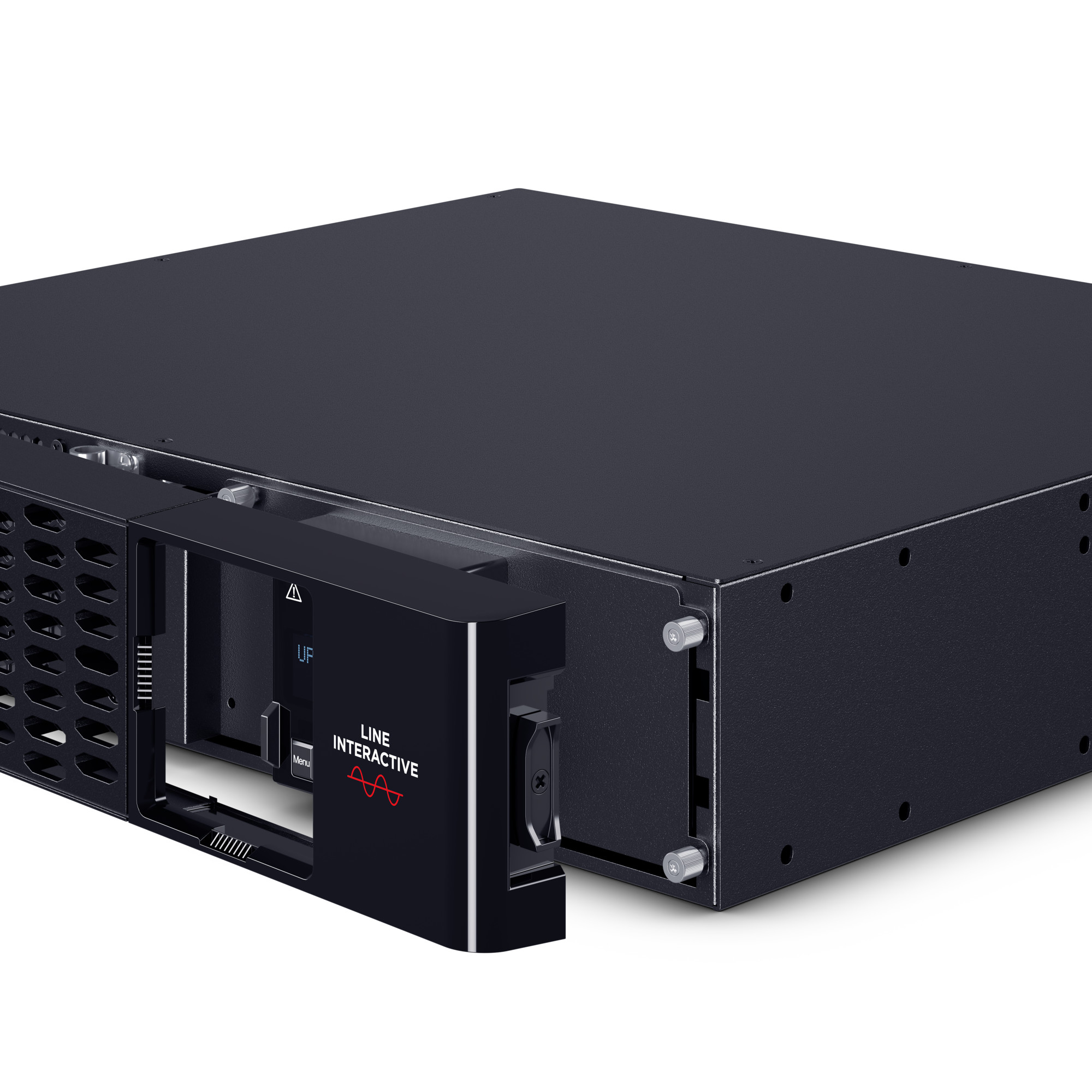 Tilts to provide a better viewing angle when the Smart App Sinewave is mounted low. Rotates 90° when placed in a tower format for horizontal viewing. Provides information on 47 different settings that include UPS status, UPS setup and control management, and testing options. - Toolless Battery Panel Access