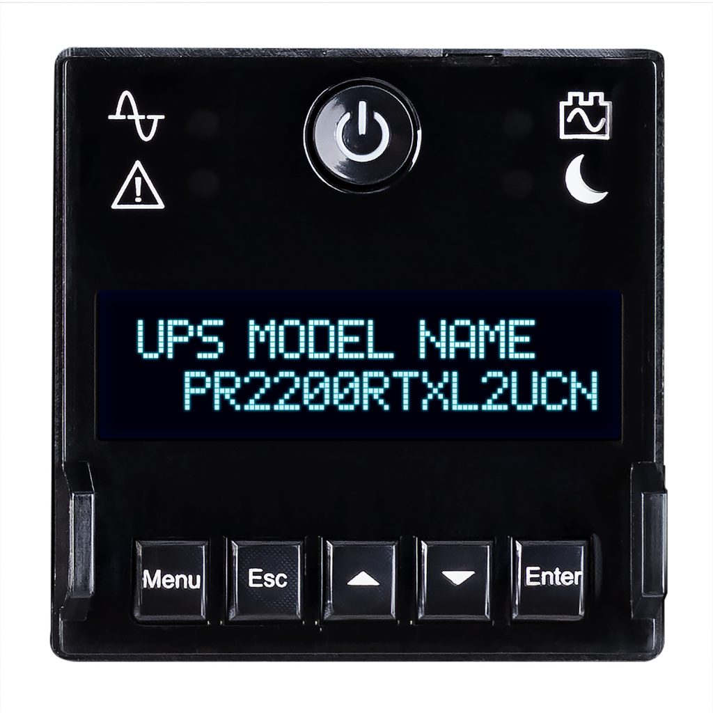 Allows UPS batteries to return to full capacity more rapidly by using a built-in charger inside of each UPS or EBM. - Rotatable Multifunction LCD Panel