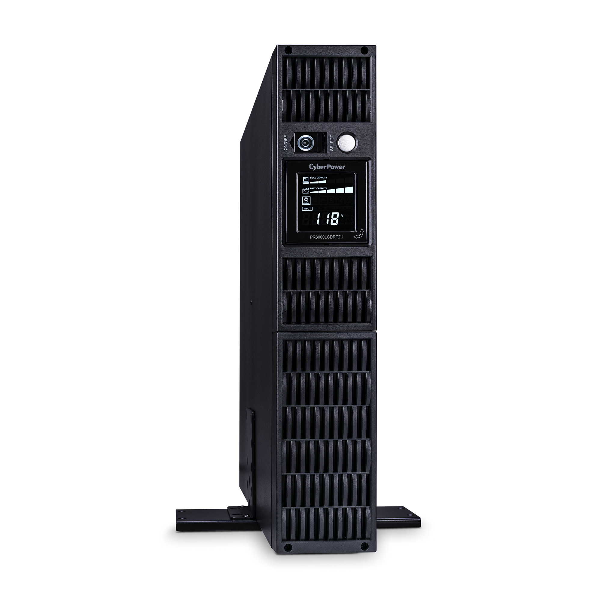 A rack/tower convertible UPS with line interactive topology, the CyberPower Smart App Sinewave PR3000LCDRT2U provides battery backup, power protection (using sine wave output), and surge protection for corporate servers, department servers, storage appliances, network devices, and telecom installations requiring Active PFC power source compatibility. The PR3000LCDRT2U uses Automatic Voltage Regulation (AVR) to correct minor power fluctuations without switching to battery power, which extends battery life. AVR is essential in areas where power fluctuations occur frequently. The PR3000LCDRT2U comes with a three-year warranty (including coverage of batteries) and a $400,000 Connected Equipment Guarantee.