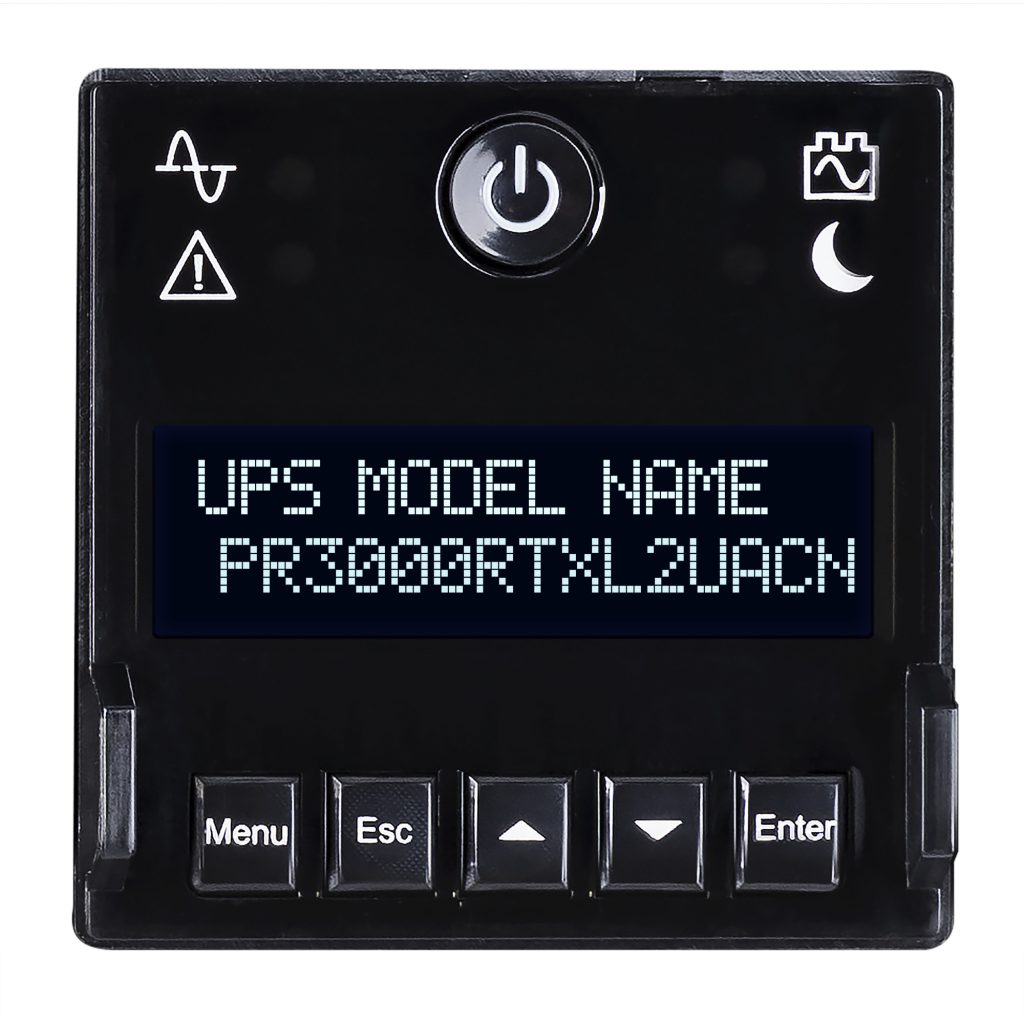 The Smart App Sinewave PR3000RTXL2UACN improves battery life through battery equalization technology and Automatic Voltage Regulation (AVR), which corrects minor power fluctuations without switching to battery power. The enhanced chassis design with an easy-to-access toolless front panel, captive screws for battery panel access, and color-coded rear panel make battery changes and installations simple and fast. The PR3000RTXL2UACN also has an innovative LCD panel that rotates 90°, tilts for a better viewing angle, and provides information on 47 different settings including UPS stats, UPS setup and control management, and testing options.