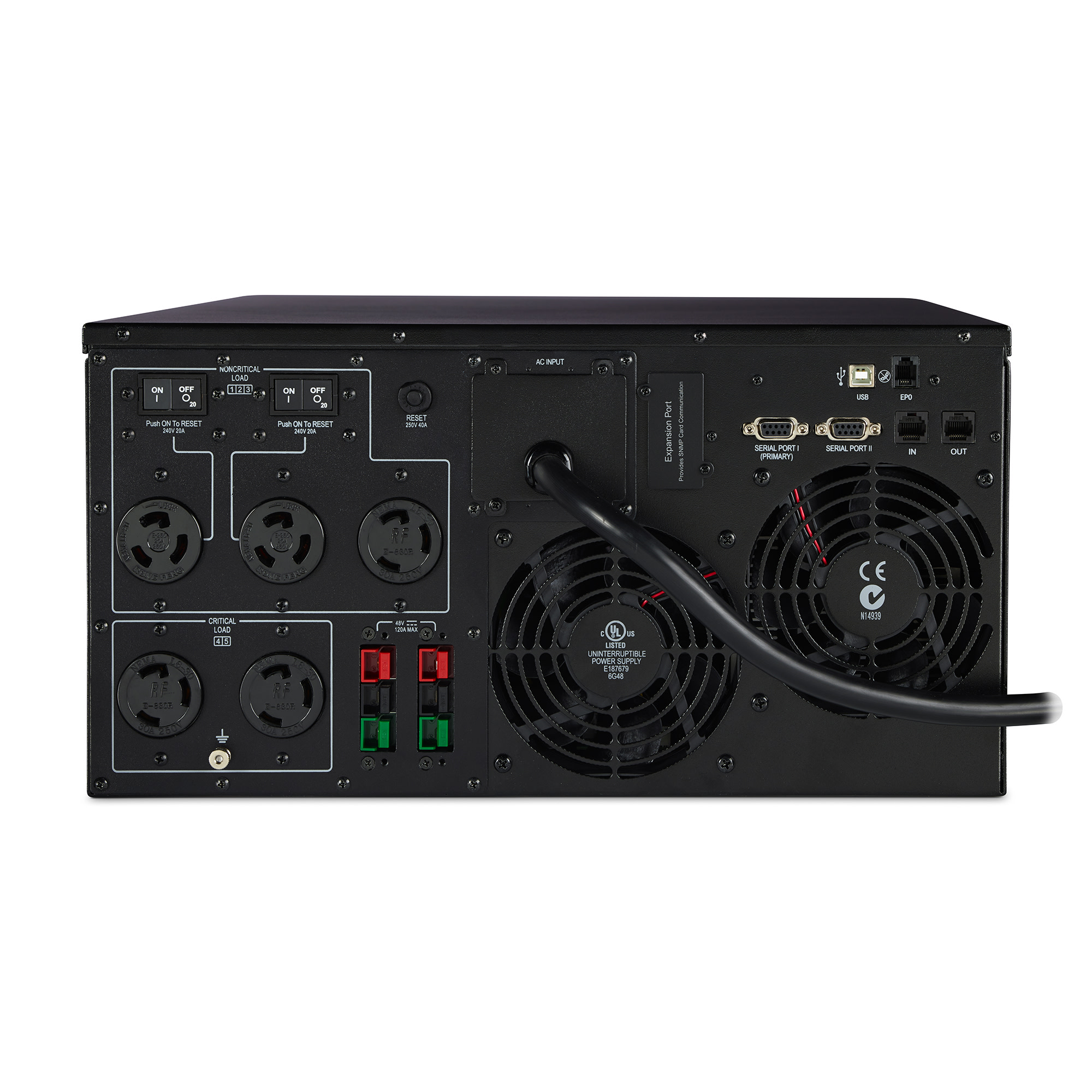 • Communication: USB, Serial, SNMP, Relay, EPO
