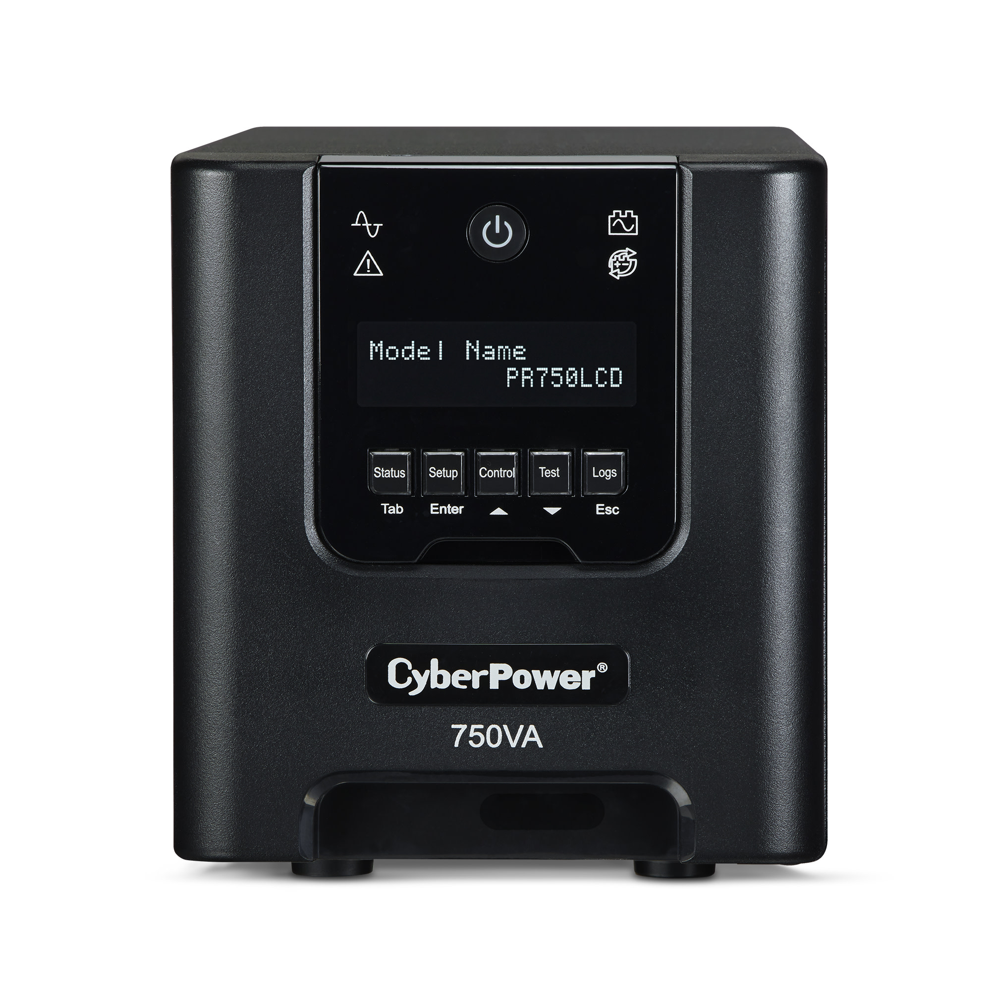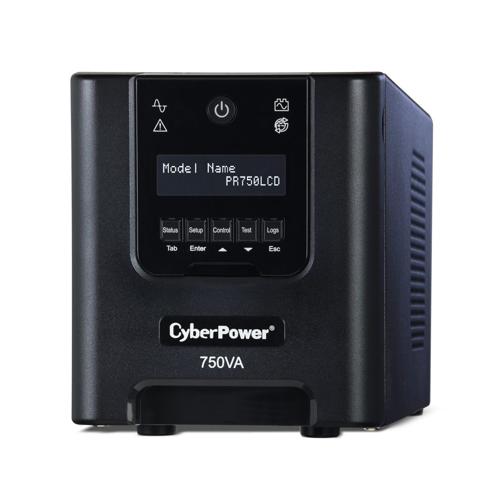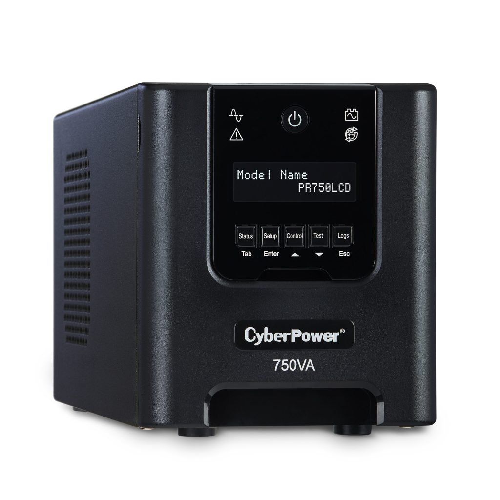 A mini-tower UPS with line interactive topology, the CyberPower Smart App Sinewave PR750LCDN provides battery backup, power protection (using sine wave output), and surge protection for corporate servers, department servers, storage appliances, network devices, and telecom installations requiring Active PFC power source compatibility.