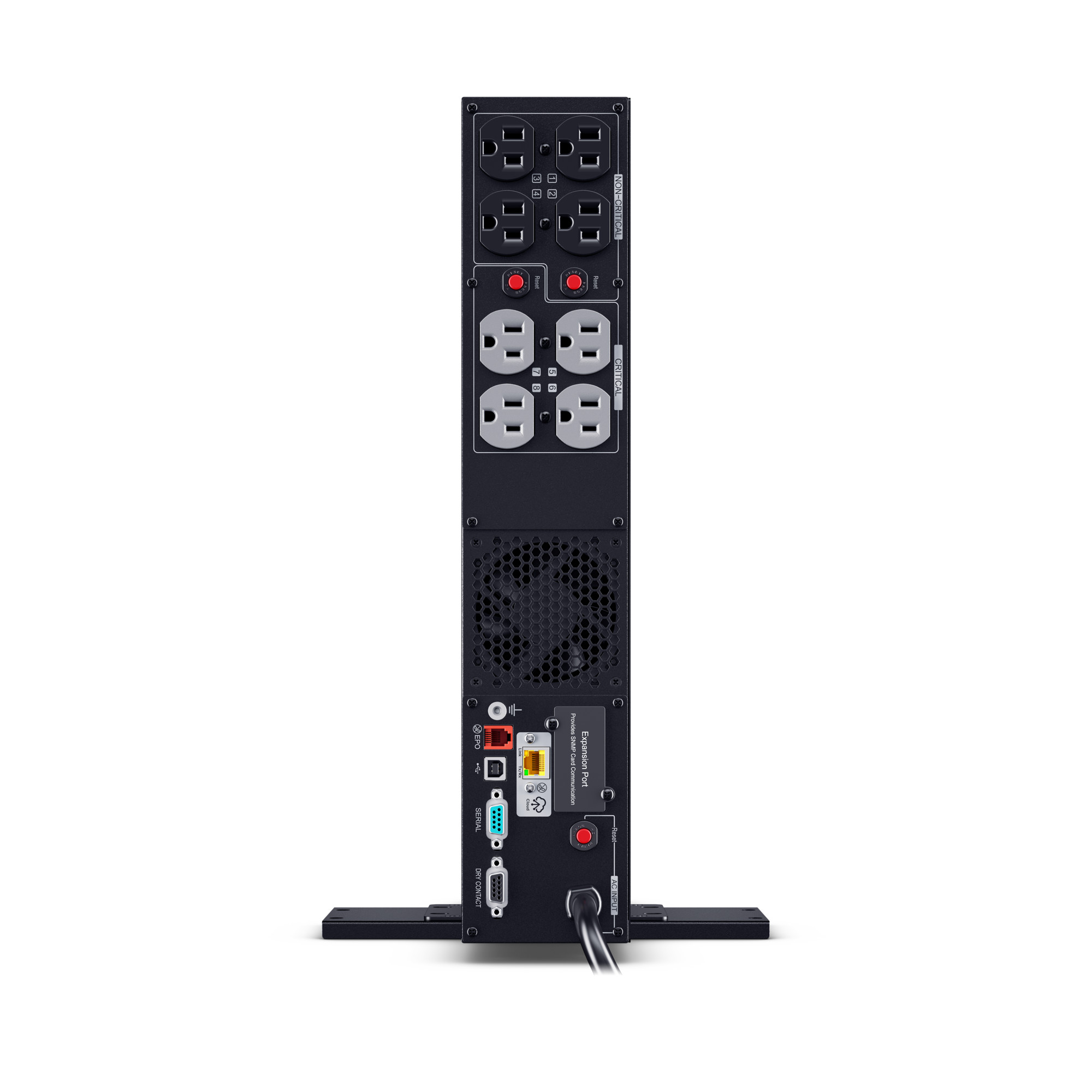 This model accepts the RMCARD205 network management card for remote management and control via a standard web browser or network management system. Includes built-in cloud monitoring.