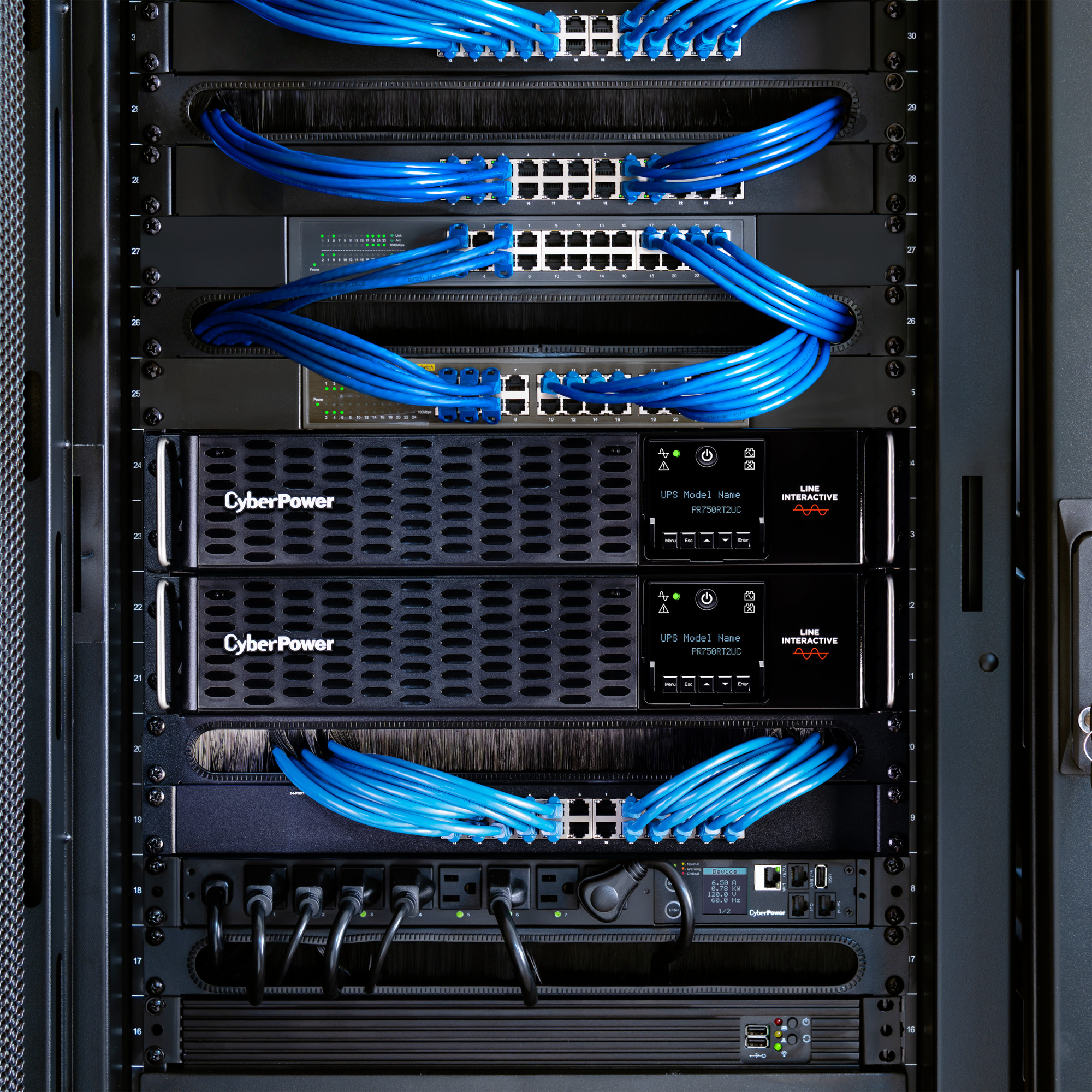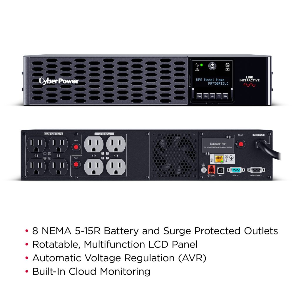 The PR750RT2UC is a Smart App Sinewave rack/tower convertible UPS with line-interactive topology, surge protection, and battery backup. CyberPower’s Smart App Sinewave series has sine wave output to eliminate power gaps that can be detected by sensitive equipment and cause unexpected shutdowns.