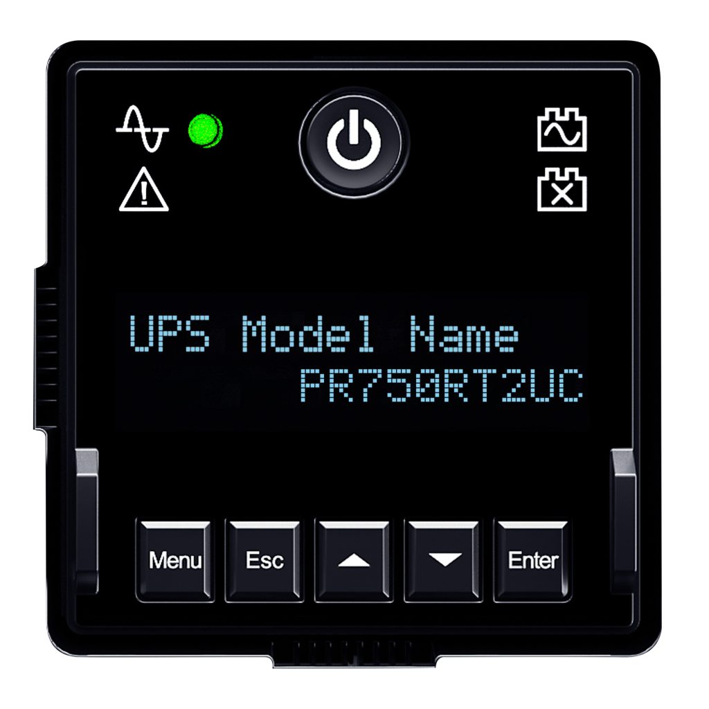 Allows UPS batteries to return to full capacity more rapidly by using a built-in charger inside of each UPS or EBM. - Rotatable Multifunction LCD Panel