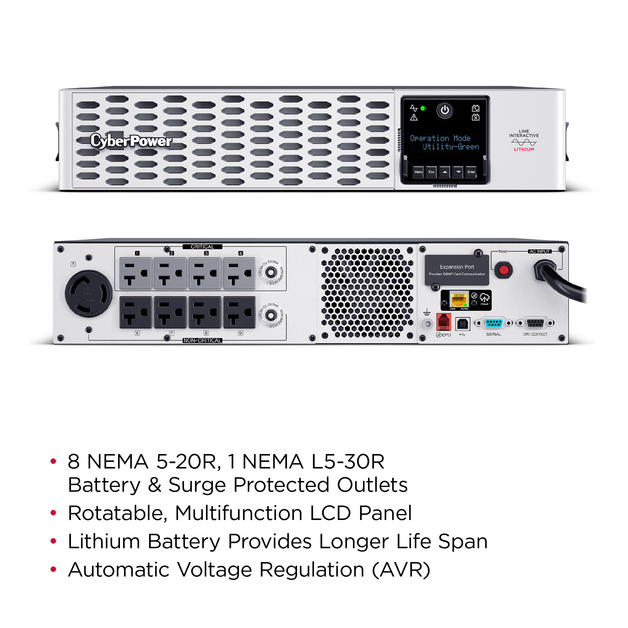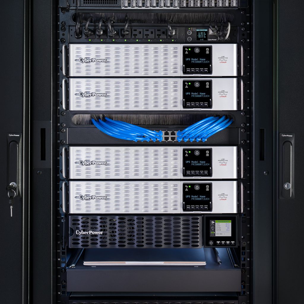 The lithium PRL3000RT2UC is a Smart App Sinewave rack/tower convertible UPS with line-interactive topology, surge protection, and battery backup. CyberPower’s Smart App Sinewave series has sine wave output to eliminate power gaps that can be detected by sensitive equipment and cause unexpected shutdowns.