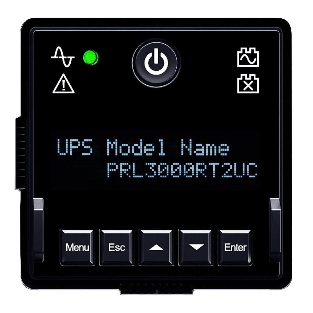 The Smart App Sinewave PRL3000RT2UC improves battery life through battery equalization technology and Automatic Voltage Regulation (AVR), which corrects minor power fluctuations without switching to battery power. The enhanced chassis design with an easy-to-access toolless front panel, captive screws for battery panel access, and color-coded rear panel make battery changes and installations simple and fast. The PRL3000RT2UC also has an innovative LCD panel that rotates 90°,and provides information on 47 different settings including UPS stats, UPS setup and control management, and testing options.