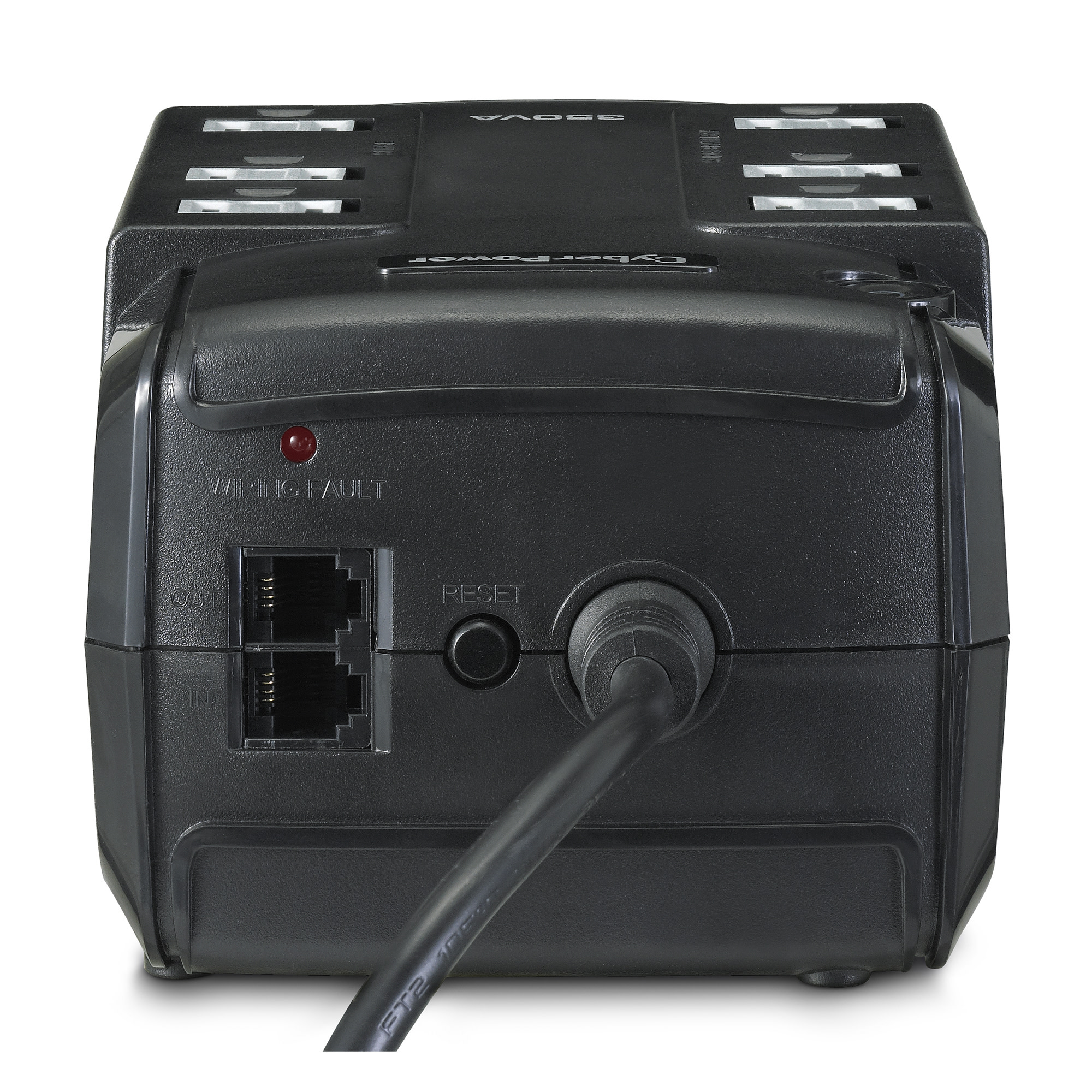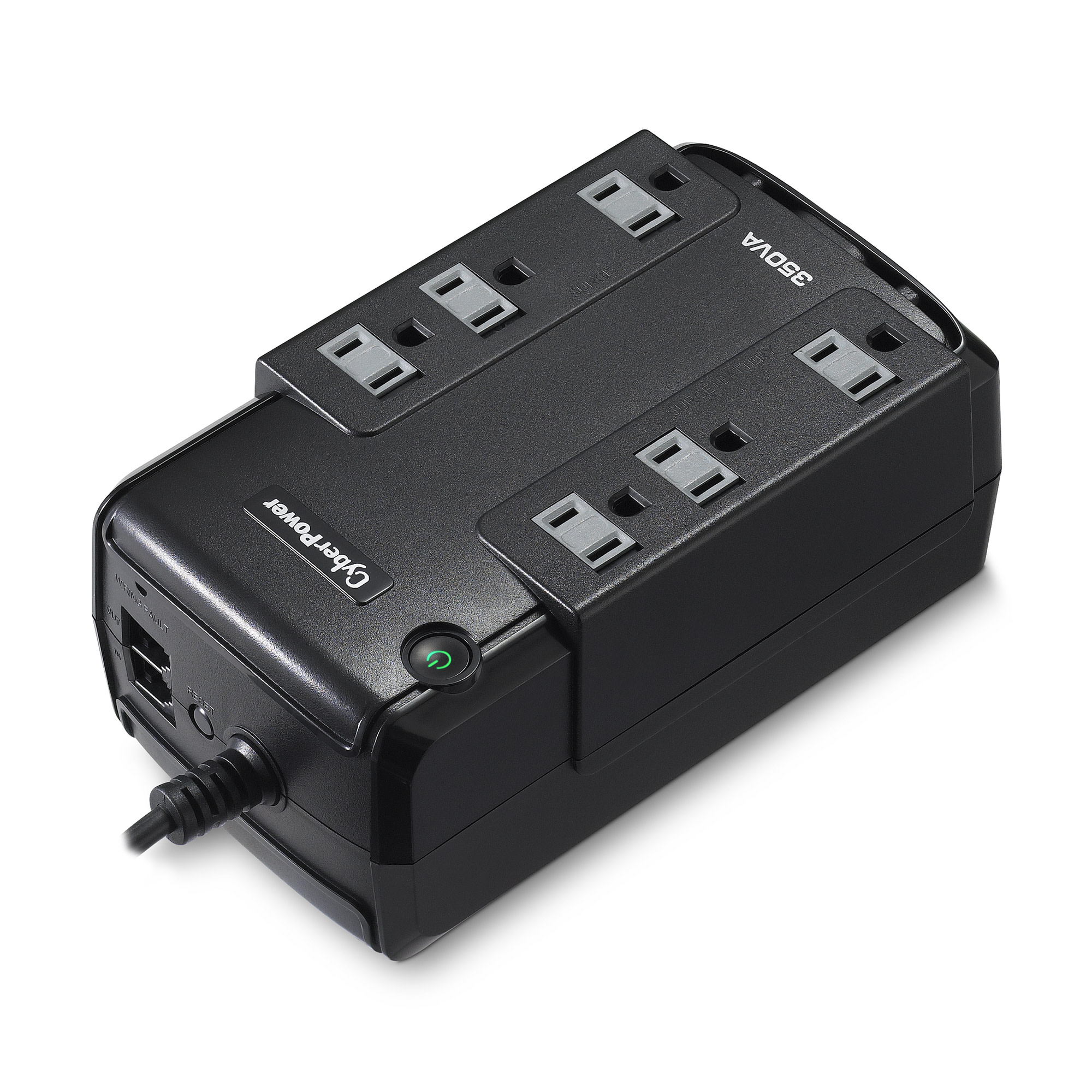 A compact UPS with standby topology, the CyberPower HN350COM provides battery backup (using simulated sine wave output) and surge protection for desktop computers, workstations, networking devices, and home entertainment systems. During power interruptions, the HN350COM offers reliable power protection and battery backup. The HN350COM has data line protection for phone/fax/modem (RJ11). This model comes with a three-year warranty (including coverage of batteries) and a $75,000 Connected Equipment Guarantee.